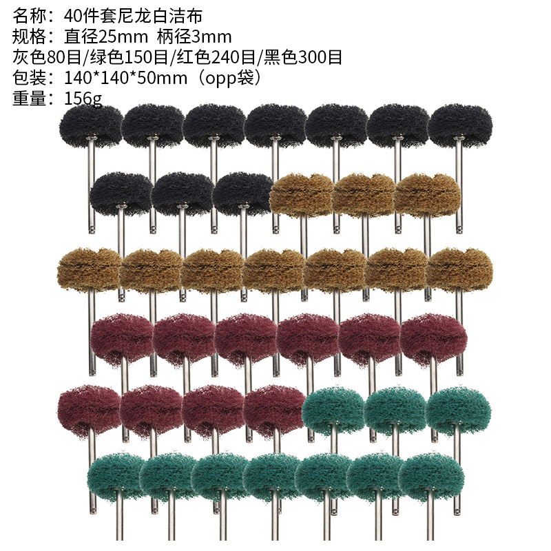 40pc 연마 휠 미니 브러시 핸들 섬유 드로잉 수세미 전기 연삭 헤드 3mm 핸들 직경 나일론 연삭 헤드스토어 가기