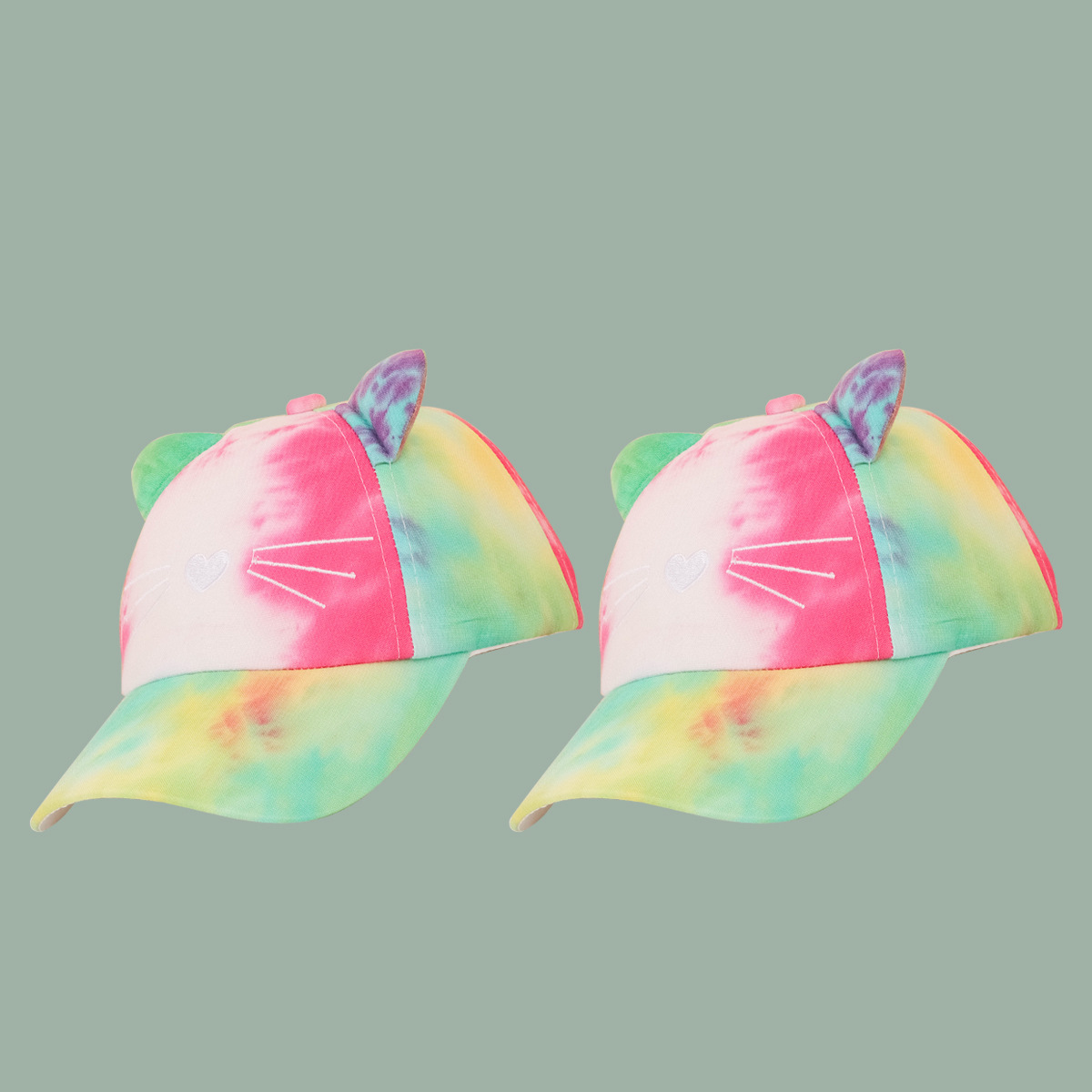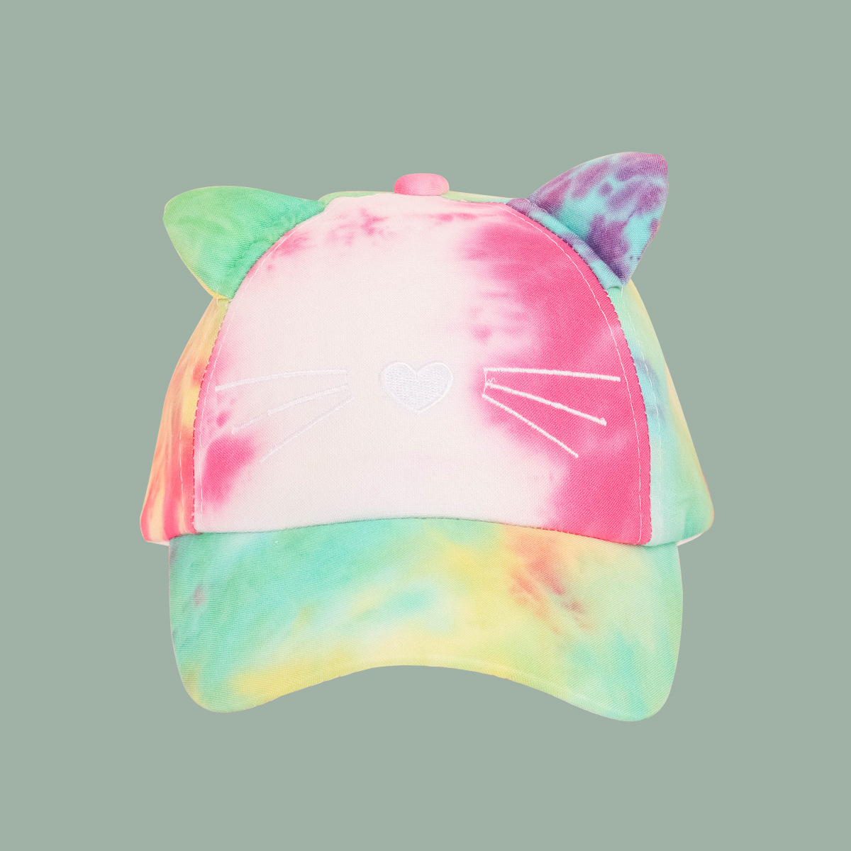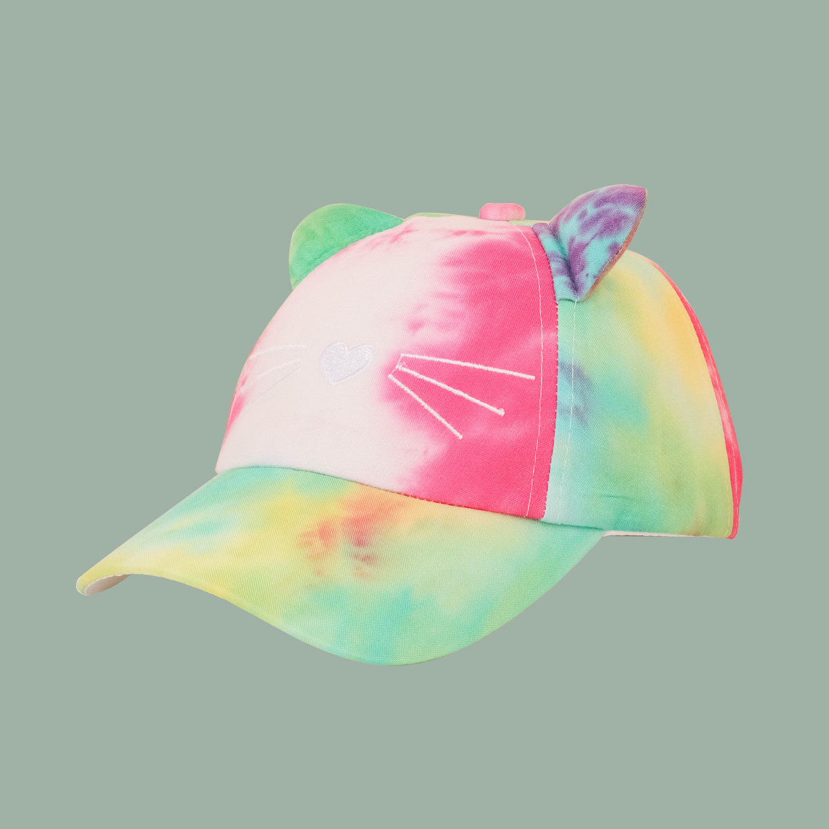 • 넥타이 염색 고양이 야구 모자-빨간색과 녹색