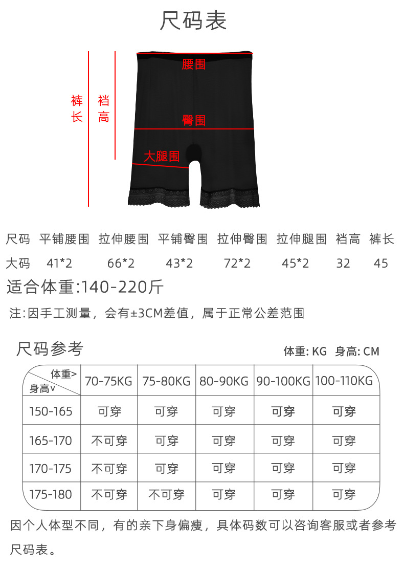 여성용 안전 바지 얇은 대형 지방 mm 100kg 모달 코튼 레이스 3점 여름 보험 바닥 반바지스토어 가기