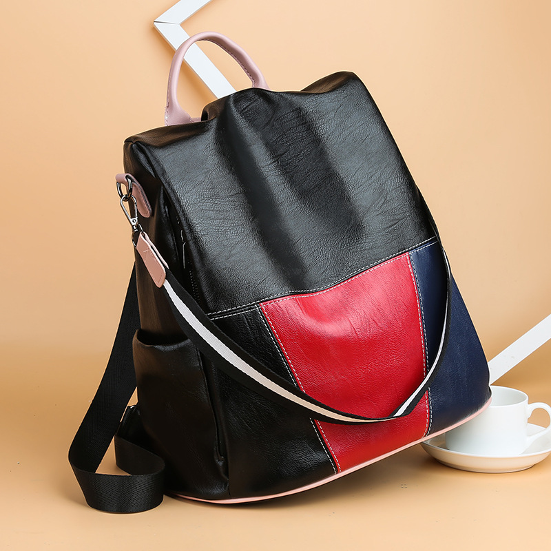 새로운 패션 백팩 여성용 백팩 유럽과 미국 캐주얼 대용량 여행 학생 책가방 스티칭 대비 여성용 가방