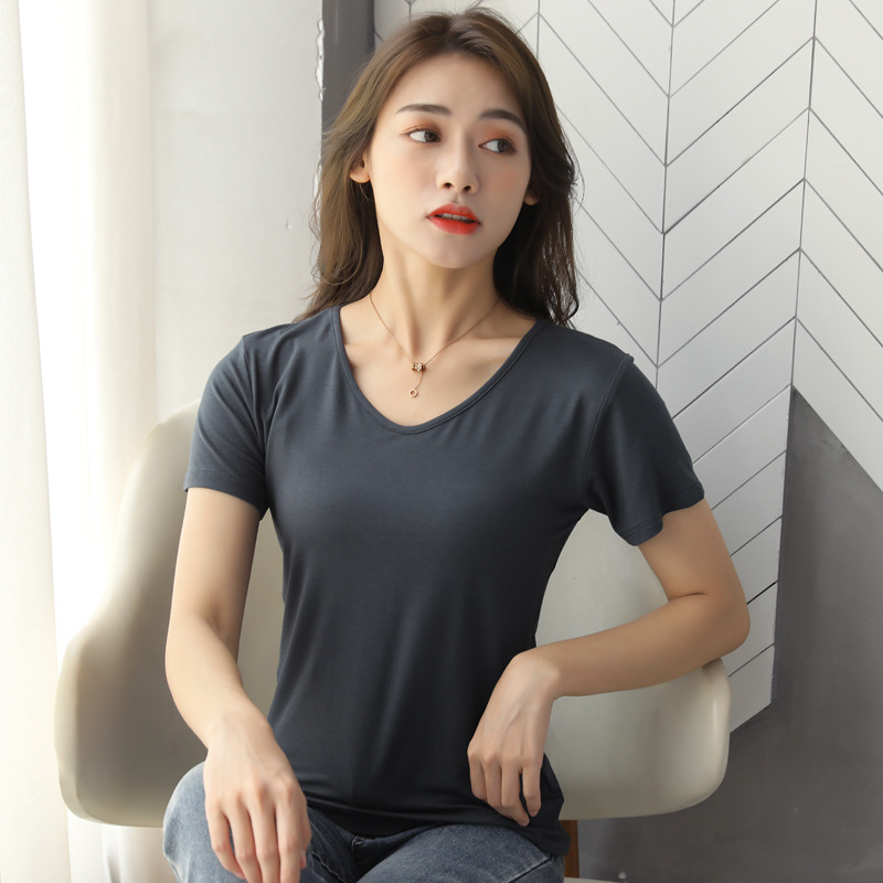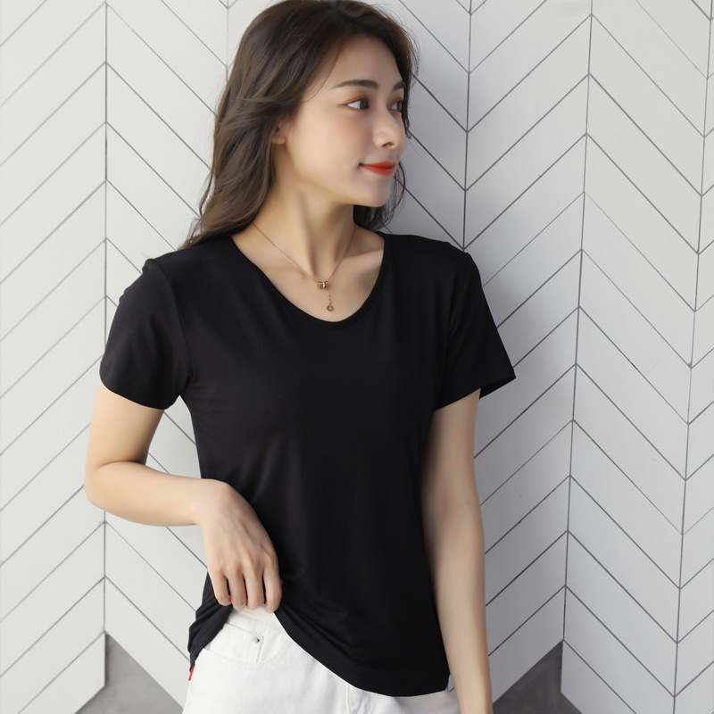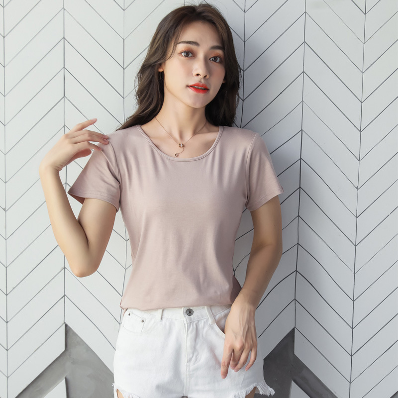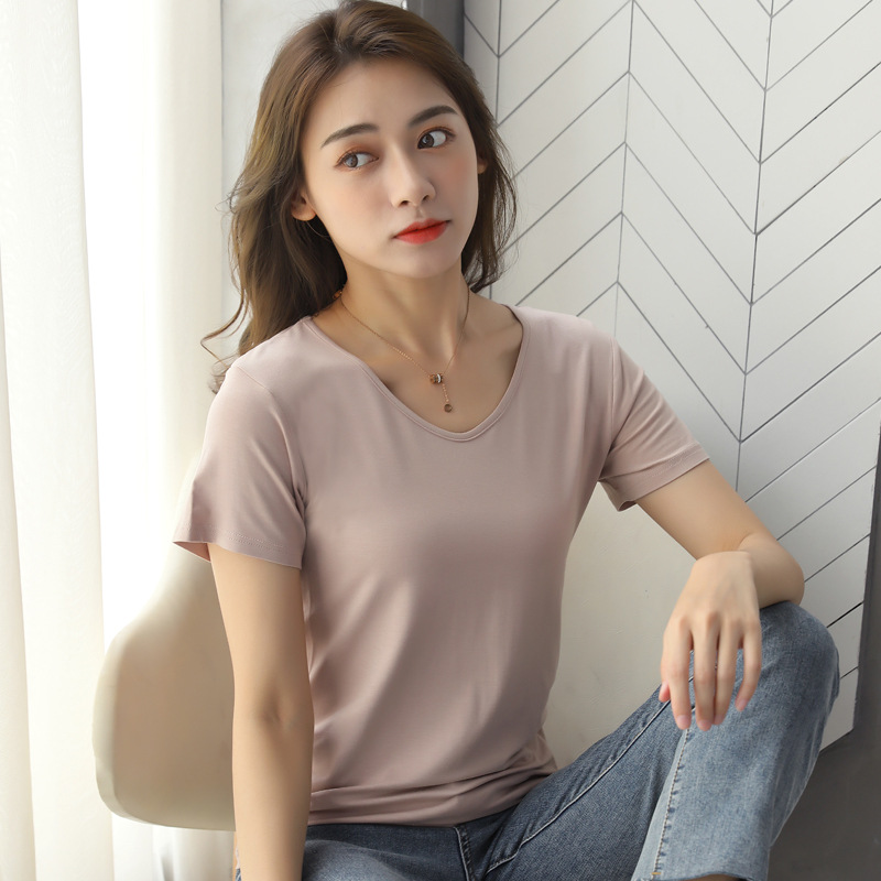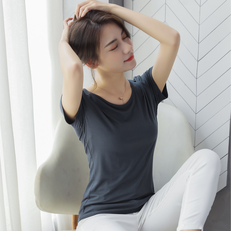여성용 모달 반팔 티셔츠 봄, 여름 2025 봄, 가을 반팔 탑이 있는 새로운 로우넥 바닥 셔츠스토어 가기