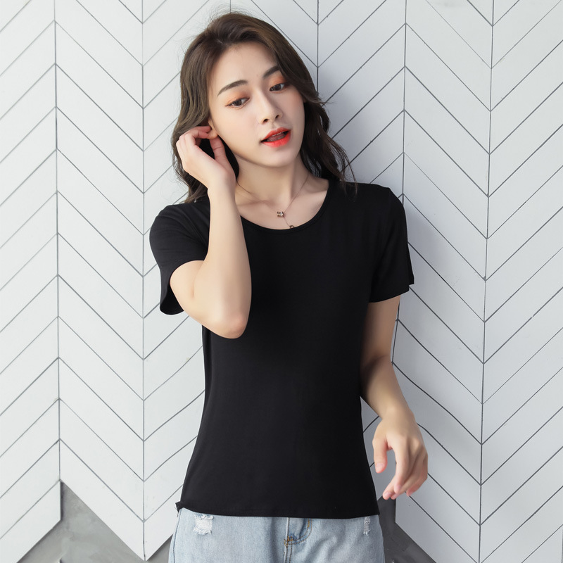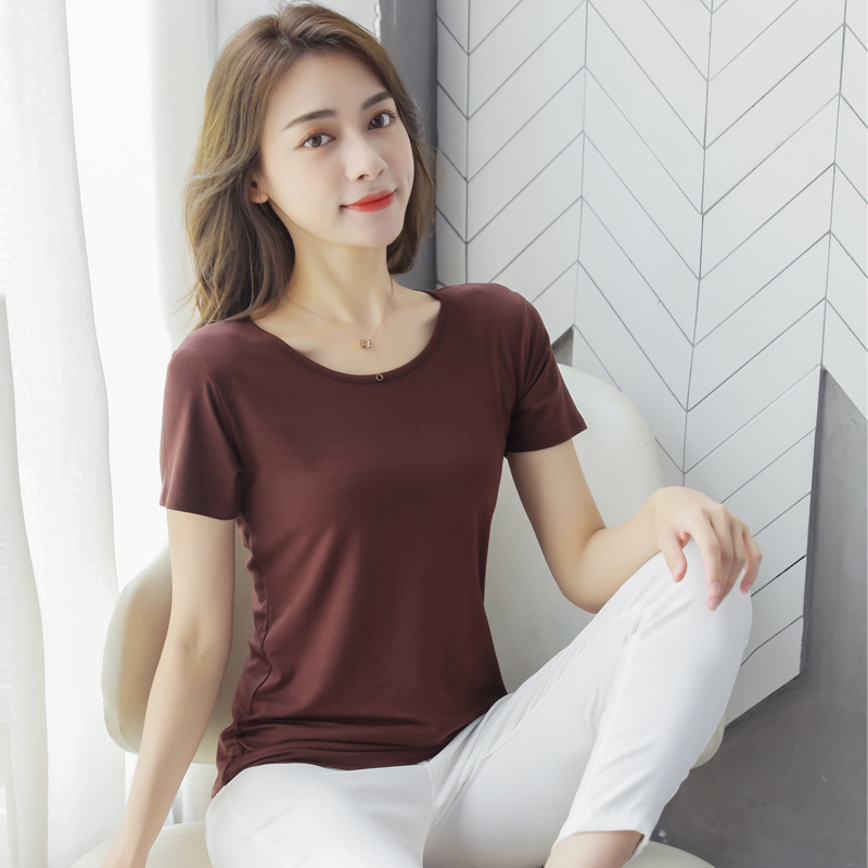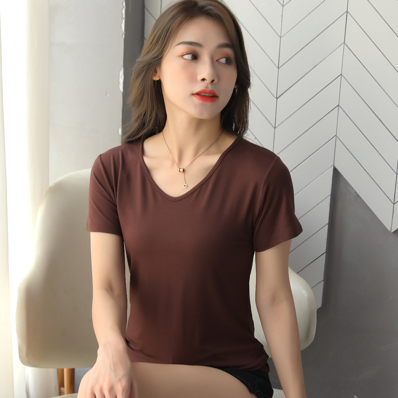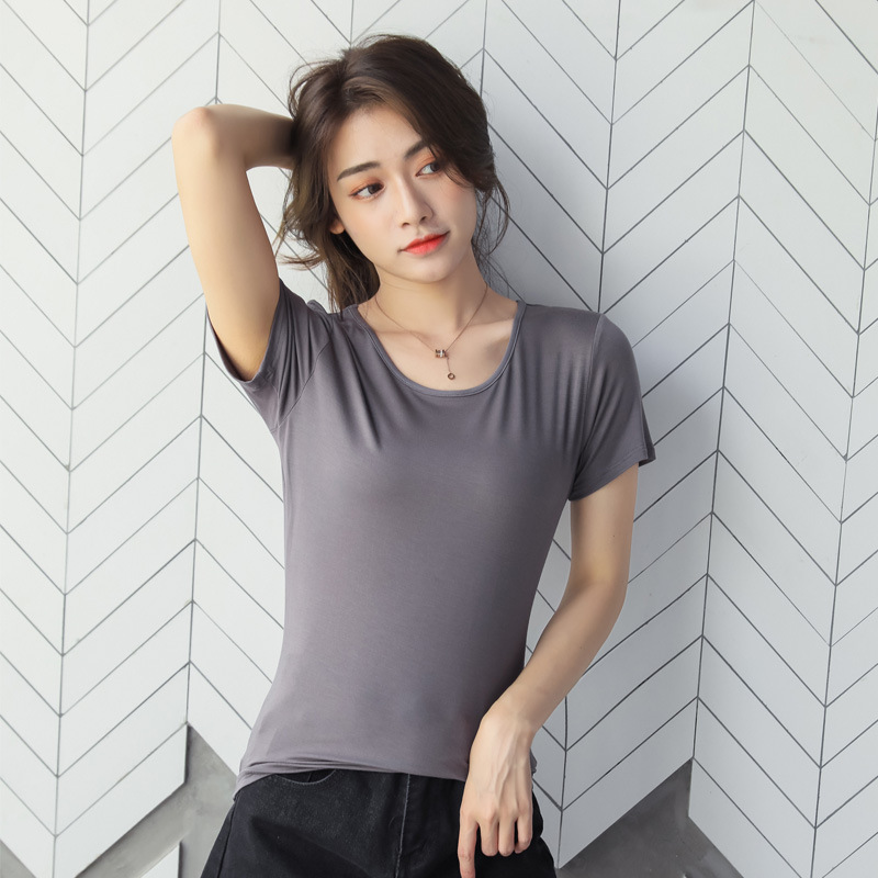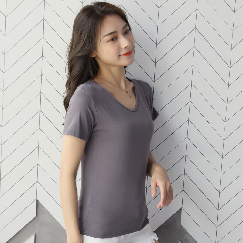 여성용 모달 반팔 티셔츠 봄, 여름 2025 봄, 가을 반팔 탑이 있는 새로운 로우넥 바닥 셔츠스토어 가기