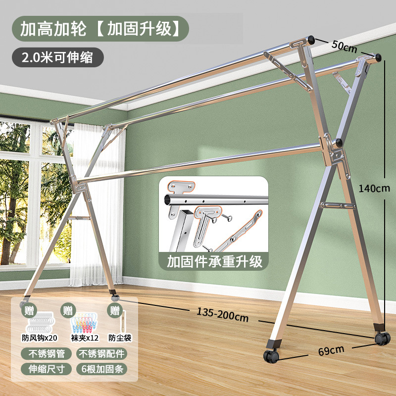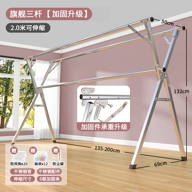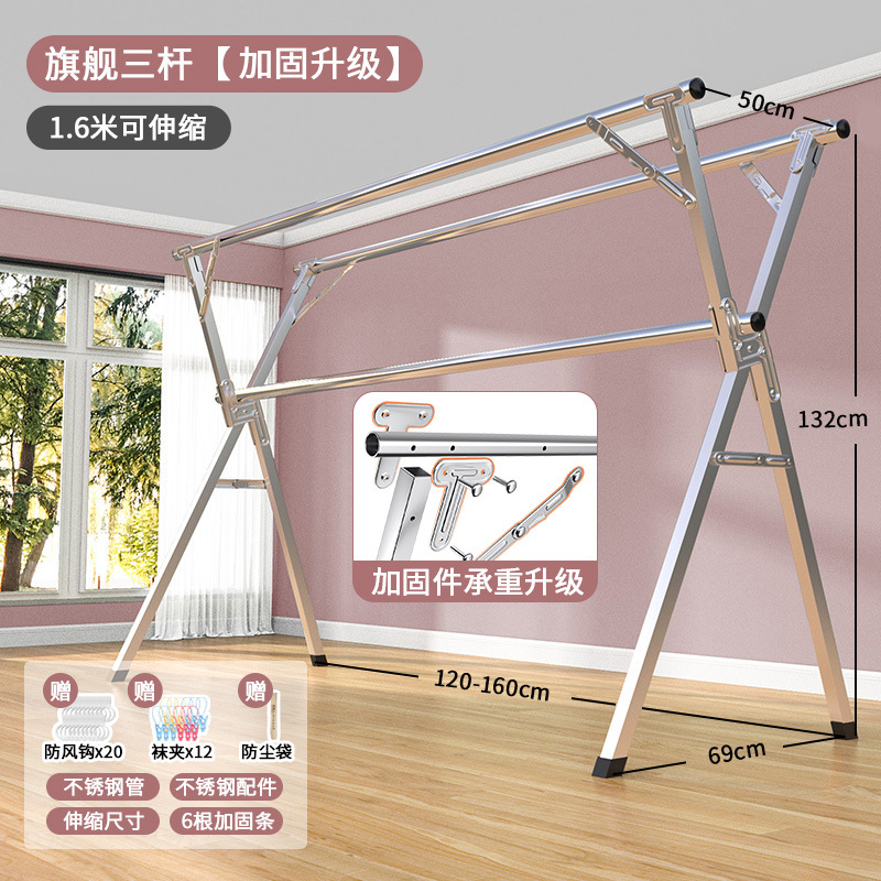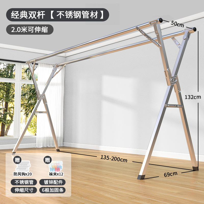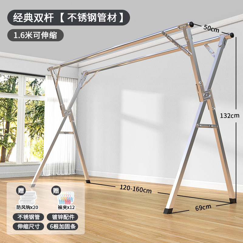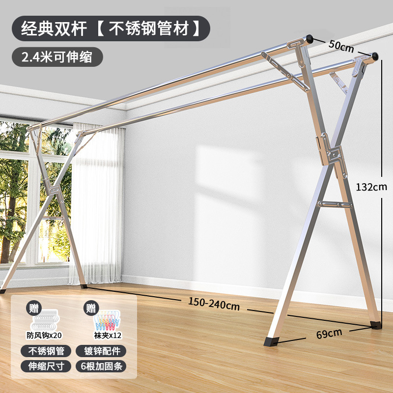 두꺼운 스테인레스 스틸 더블 로드 건조 랙 바닥 실내 가정용 건조 의류 랙 발코니 건조 랙 바닥 도매스토어 가기