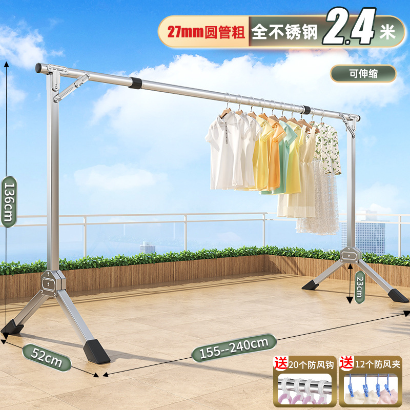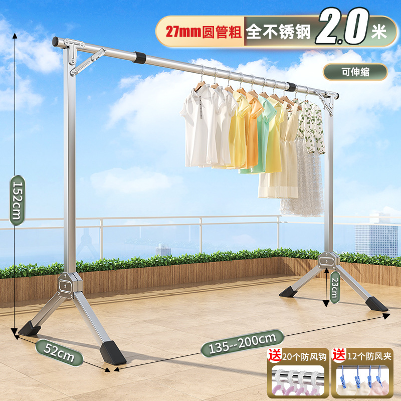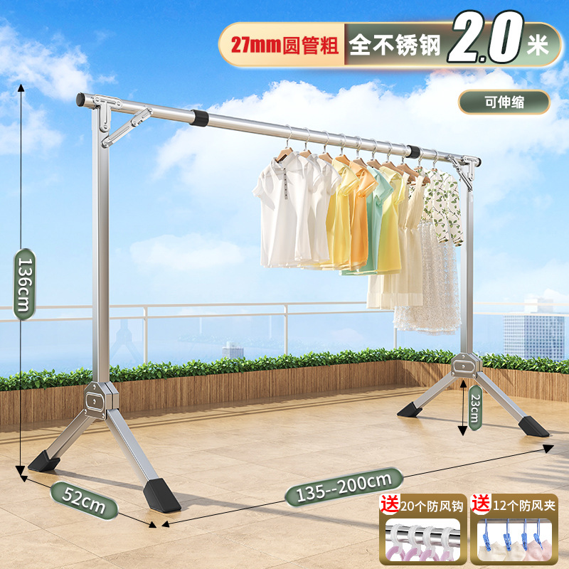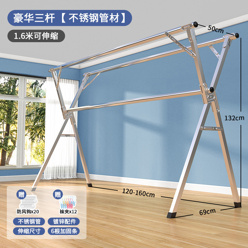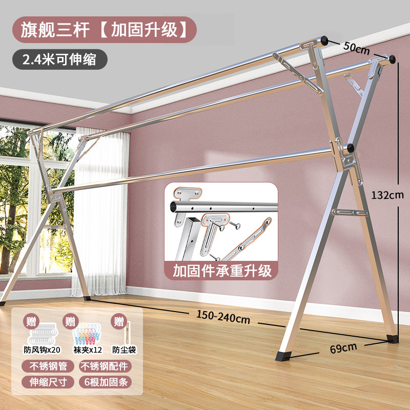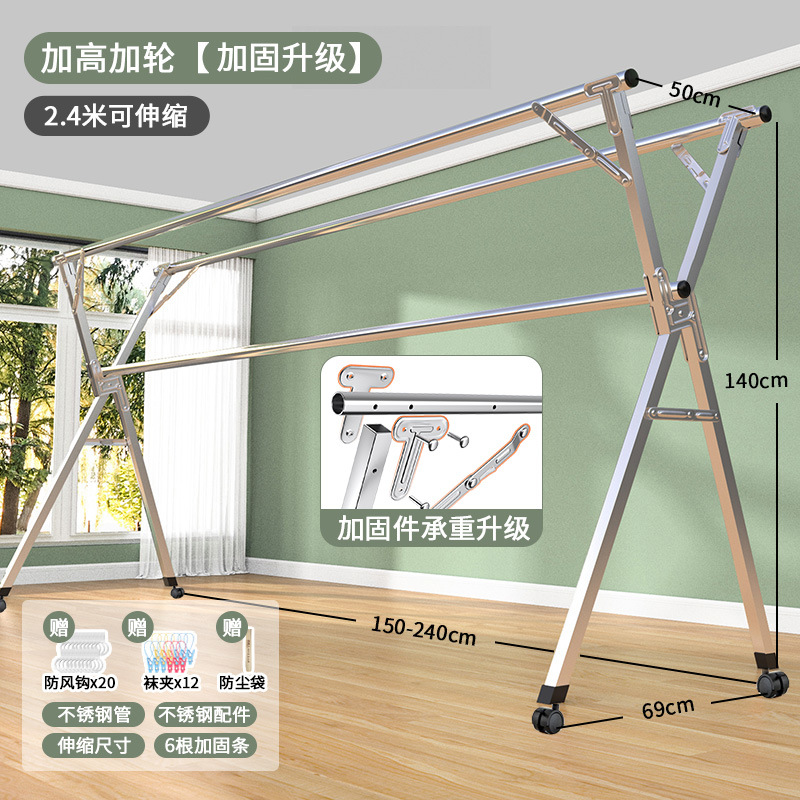 두꺼운 스테인레스 스틸 더블 로드 건조 랙 바닥 실내 가정용 건조 의류 랙 발코니 건조 랙 바닥 도매스토어 가기
