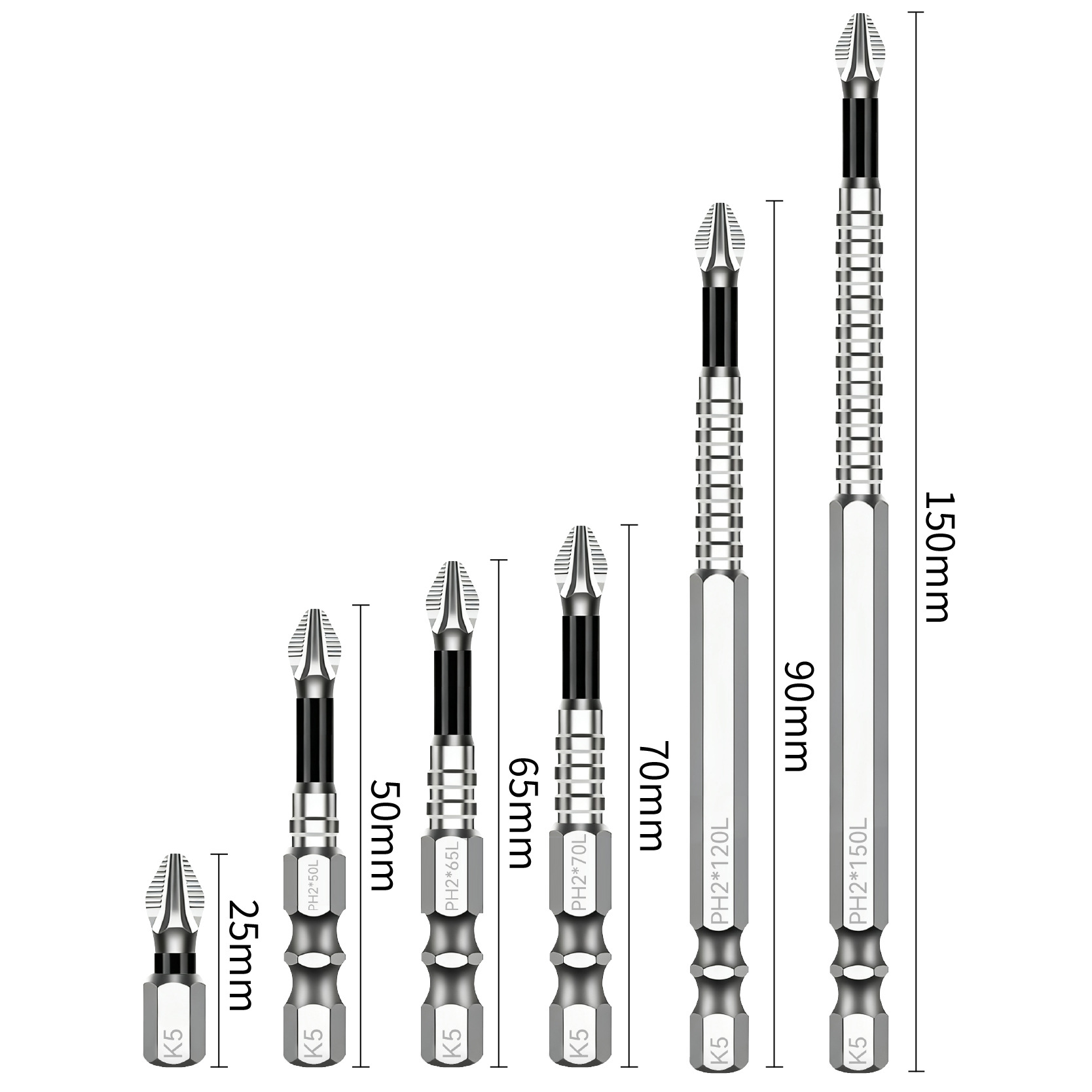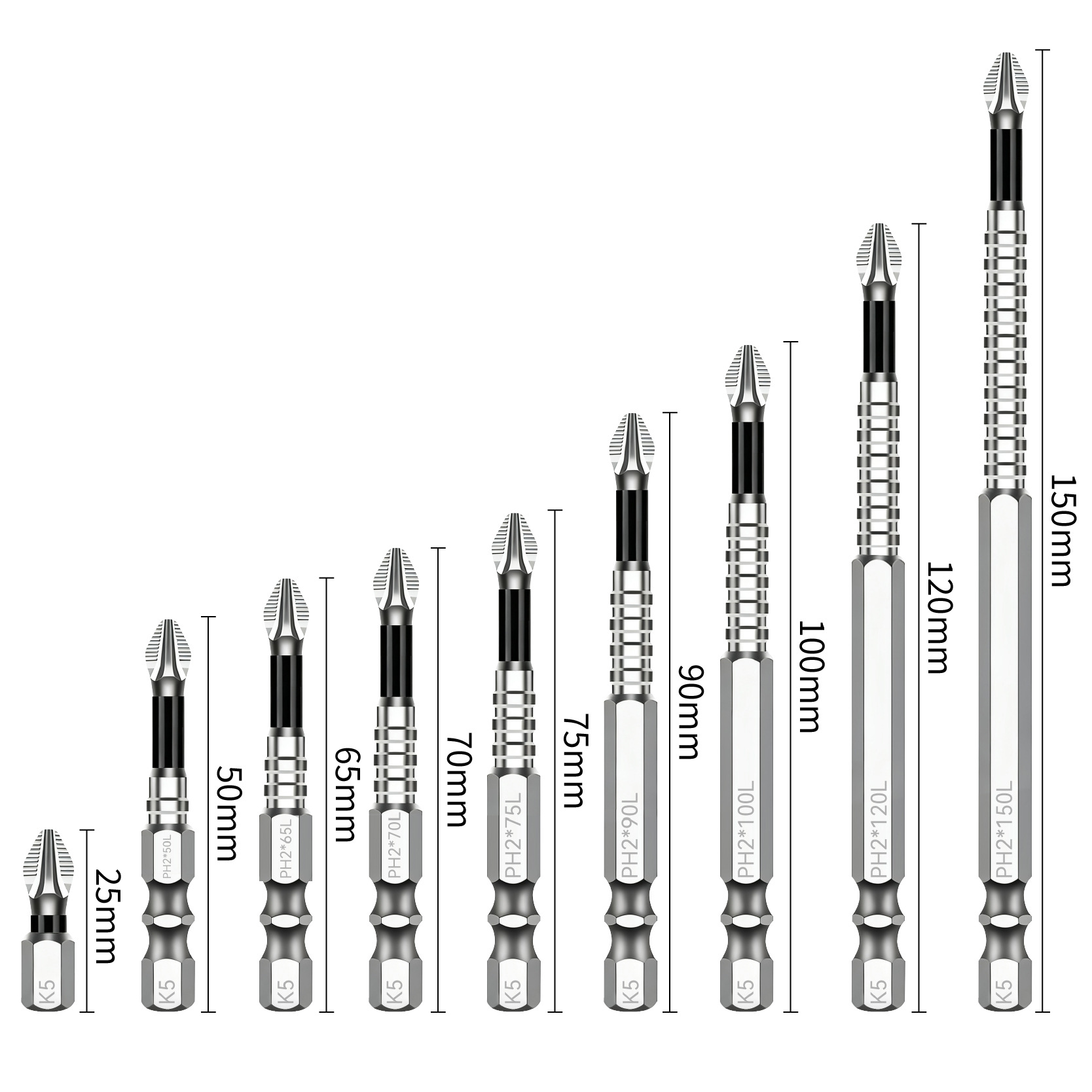 Yunbei 미끄럼 방지 비트 전기 바람 비트 전기 드라이버 비트 마그네틱 비트 PH2 블루 크로스 비트
