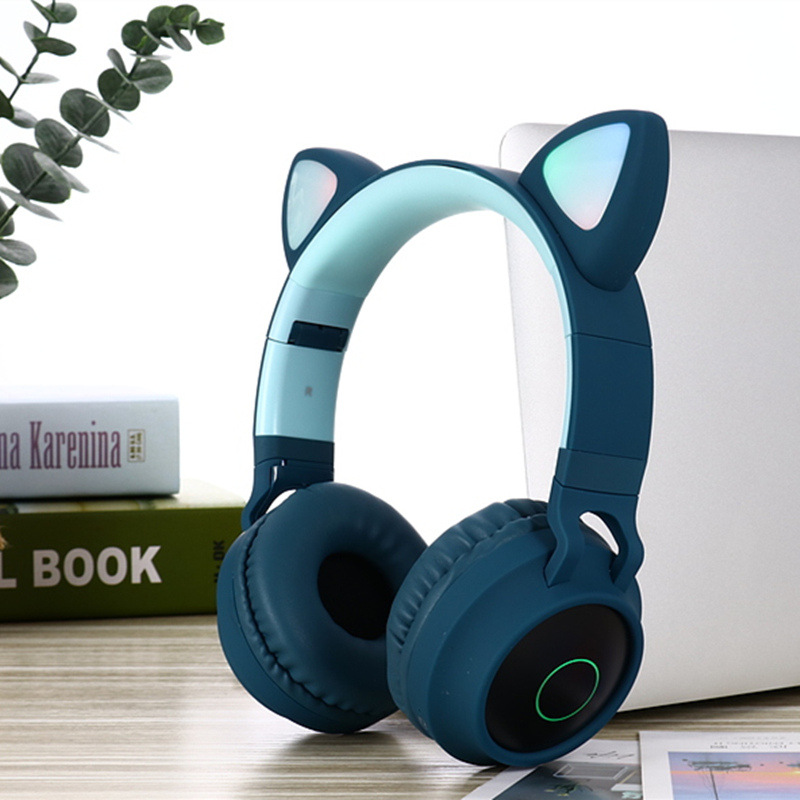 귀여운 고양이 귀 빛나는 서브 우퍼 헤드셋 휴대 전화 컴퓨터 접이식 텔레스코픽 무선 블루투스 헤드셋