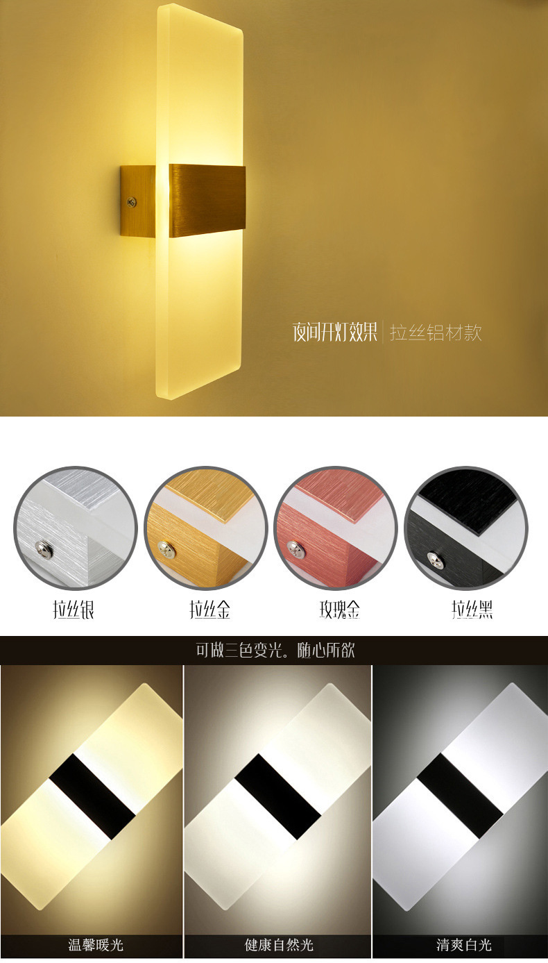 아크릴 led 벽 램프 간단한 침실 침대 옆 통로 벽 램프 호텔 엔지니어링 복도 국경 간 조명 도매