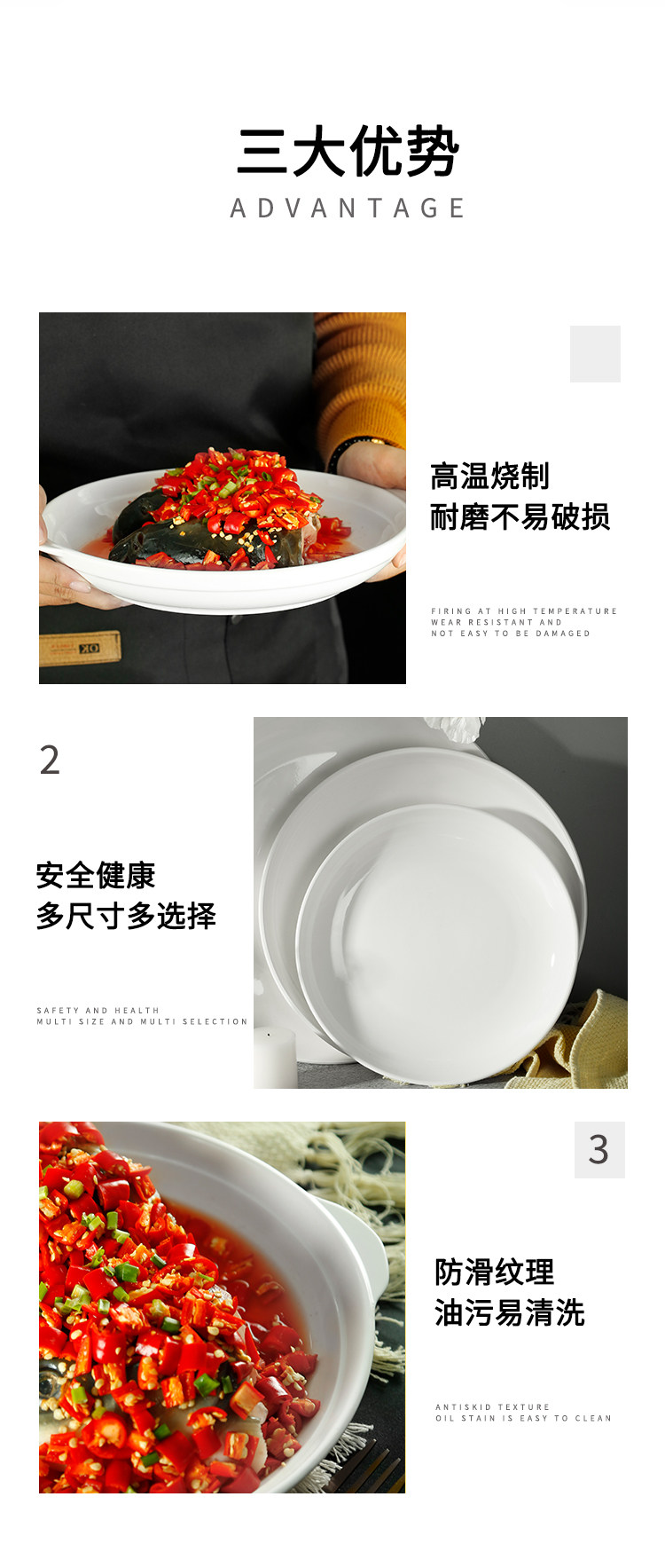 다진 후추 찐 생선 머리 접시 특수 접시 깊은 접시 호텔 대형 생선 접시 대형 접시 치킨 대형 원형 크리에이티브 플레이트 상업용