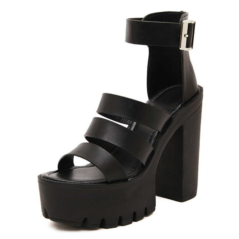 유럽과 미국의 스트리트 스타일 벨트 버클 머핀 물고기 입 샌들 여성용 여름 13cm 슈퍼 하이힐 여성용 두꺼운 뒤꿈치 126-7