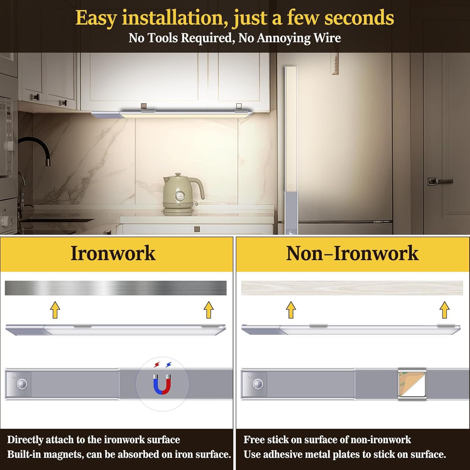 국경을 넘는 인기 상품 LED 인체감지 캐비닛 조명, 배선이 필요 없는 분리형 배터리 팩 가정용 자석식 옷장 조명 스트립