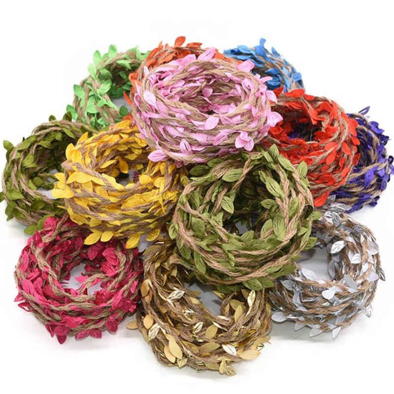DIY 색상 짠 인공 잎 등나무 원예 꽃다발 포장 장식 스트랩 숲 녹색 잎 대마 로프 10 미터스토어 가기