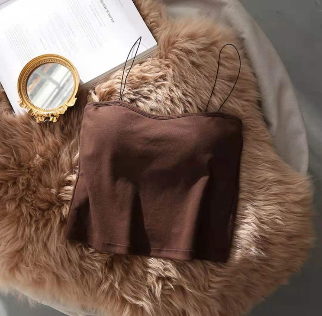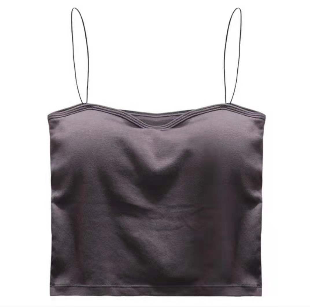한국식 유화 여성용 캐미솔 짧은 여름 겉옷 섹시한 벨트 가슴 패드 작은 신선한 아름다움 뒤에 강철 반지 없음