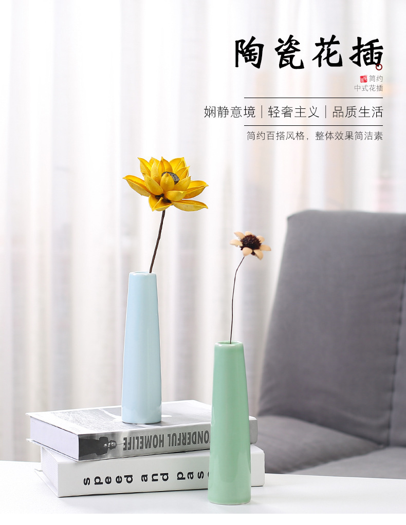 청자 세라믹 작은 꽃병 수경 녹색 말린 꽃 세트 간단한 데스크탑 사무실 거실 입구 꽃 장식품