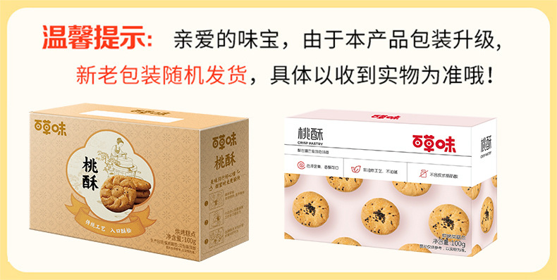 바이카오웨이 복숭아맛 쇼트브레드 100g (박스당 36개입) 전통과자 아침 간식 바삭한 스낵 소포장스토어 가기