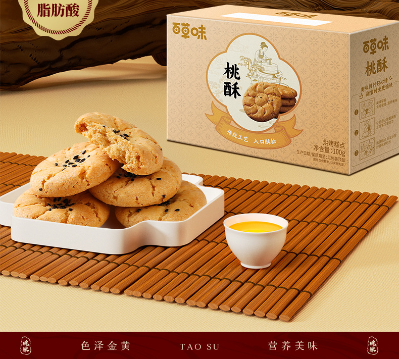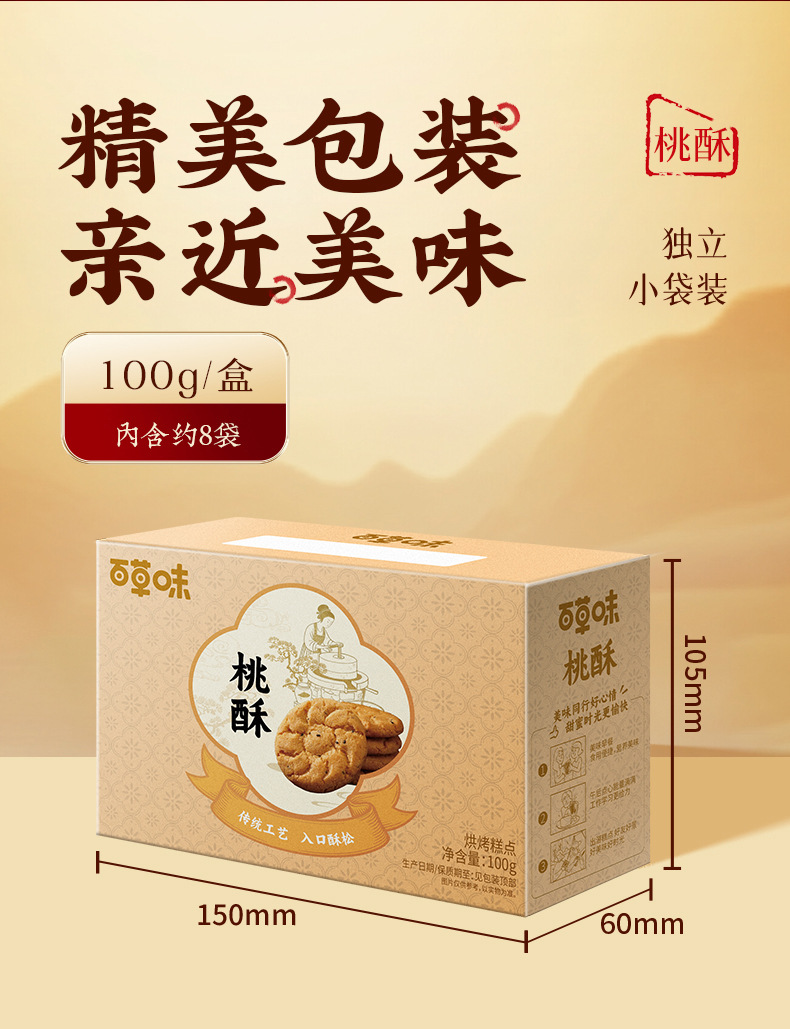 바이카오웨이 복숭아맛 쇼트브레드 100g (박스당 36개입) 전통과자 아침 간식 바삭한 스낵 소포장