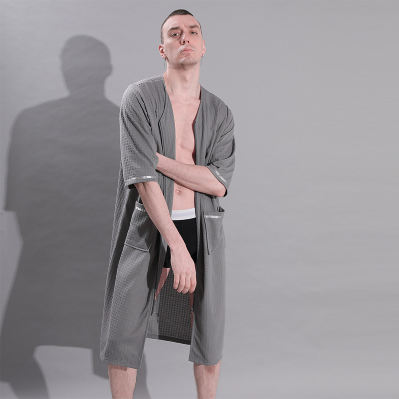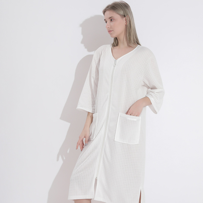 봄과 여름 남성 잠옷 원피스 플러스 사이즈 지퍼 잠옷 여성용 얇은 원피스 잠옷 겉옷 안티 라이트 목욕 가운스토어 가기