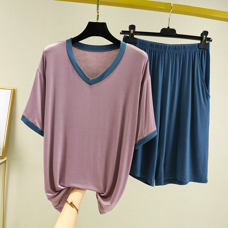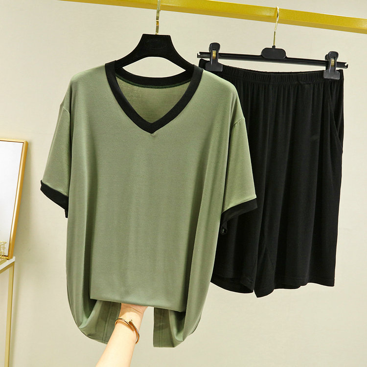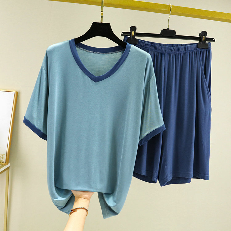 모달 브이넥 잠옷 남자의 세트 여름 얇은 반팔 반바지 플러스 사이즈 느슨한 캐주얼 아웃웨어 가정복