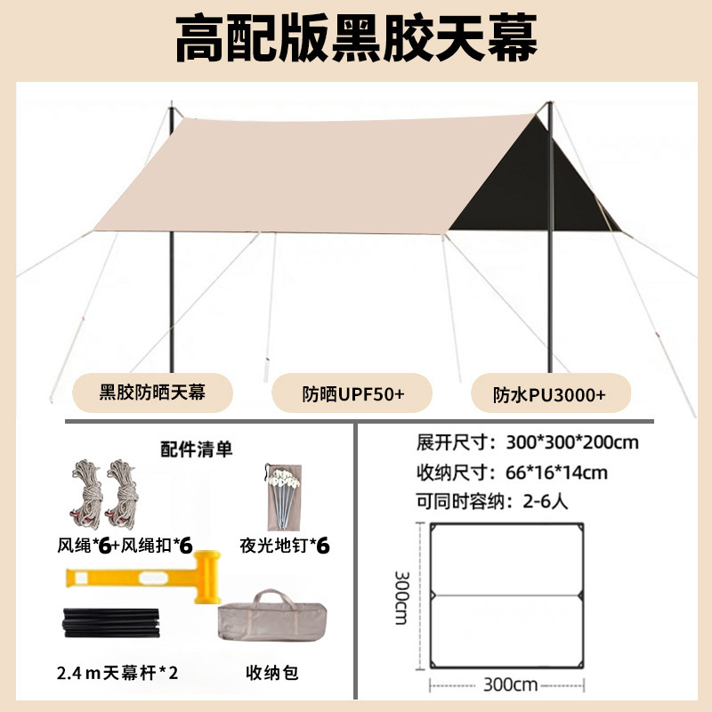 • 높은 검은 접착제 canopy-210D 옥스포드 천 [3*4M 퀵 샌드 골드]]