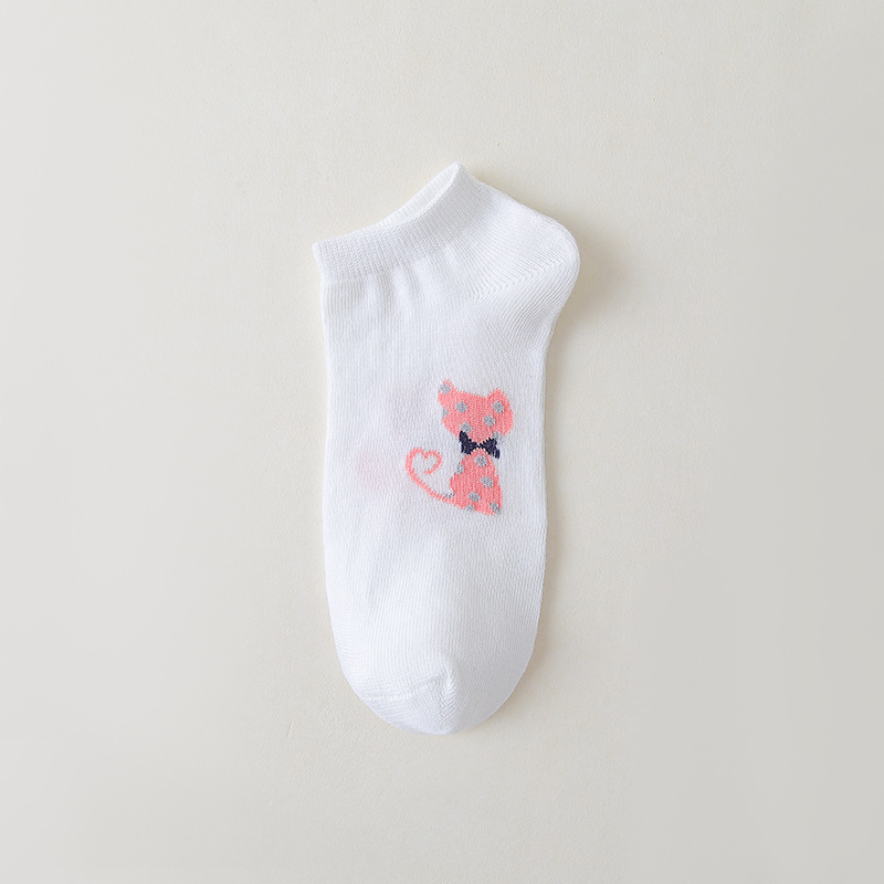여성용 얇은 면 양말, 봄 여름용, 발목 양말, 핑크 딸기 무늬, 체크무늬, 만화 캐릭터 양말, 짧은 양말 도매