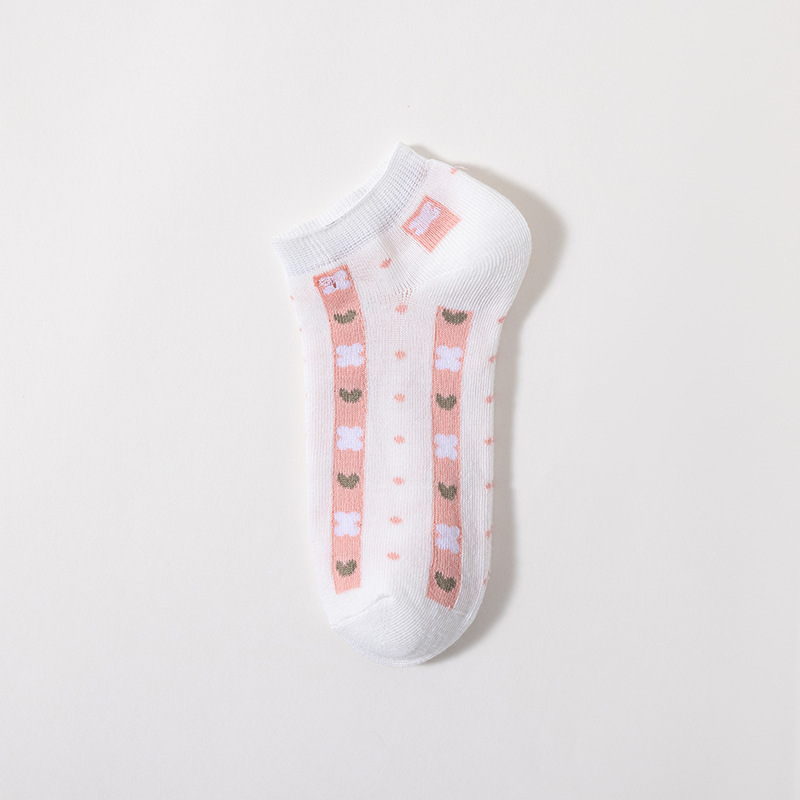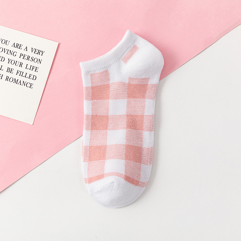 여성용 얇은 면 양말, 봄 여름용, 발목 양말, 핑크 딸기 무늬, 체크무늬, 만화 캐릭터 양말, 짧은 양말 도매스토어 가기