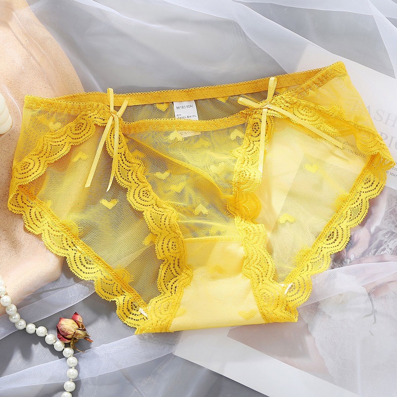 일본식 귀여운 메쉬 낮은 허리 투명 레이스 속옷 여자의 달콤한 여자의 활 단색 관점 팬티스토어 가기