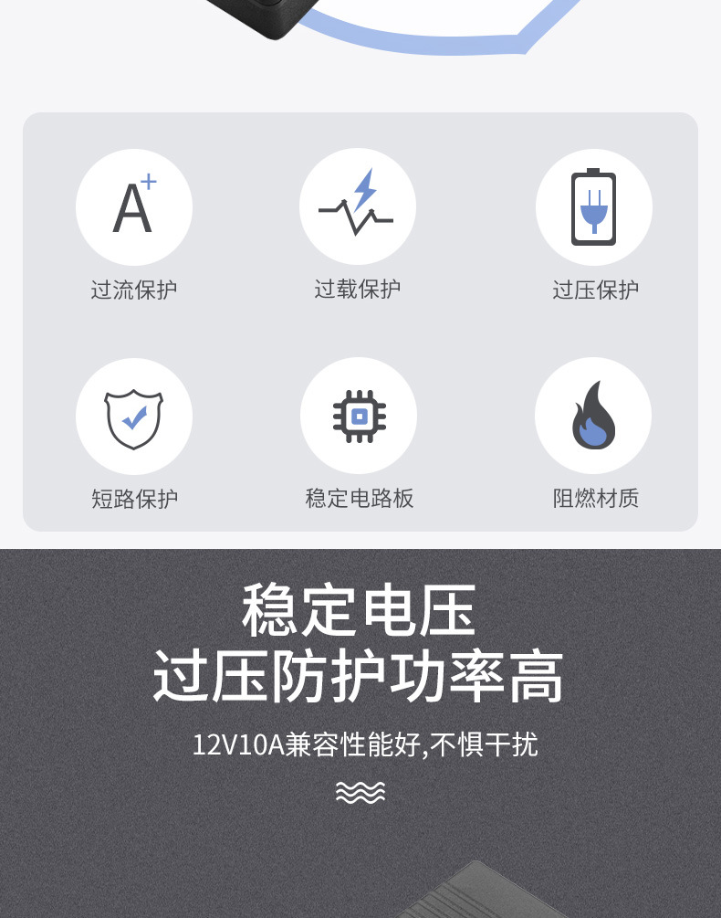 12V10A 스위치 듀얼 와이어 충전기 셋톱 박스 제모 장비 카메라 디스플레이 화면 라우터 전원 어댑터