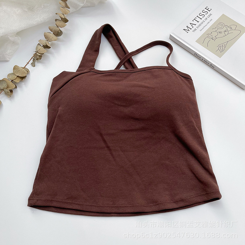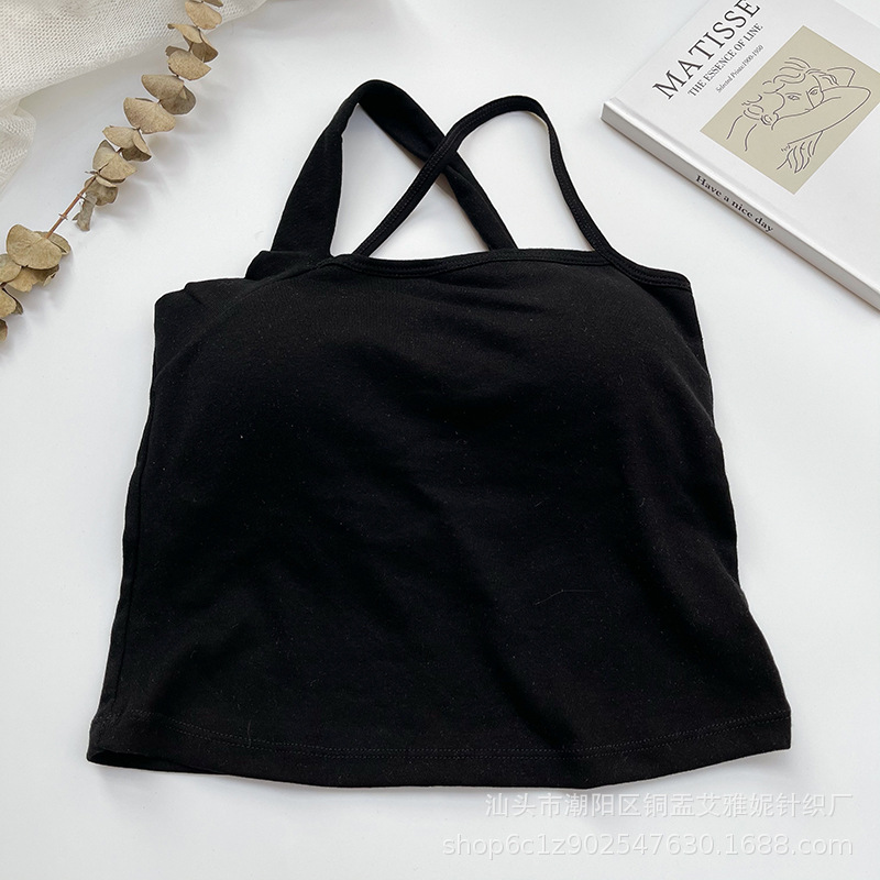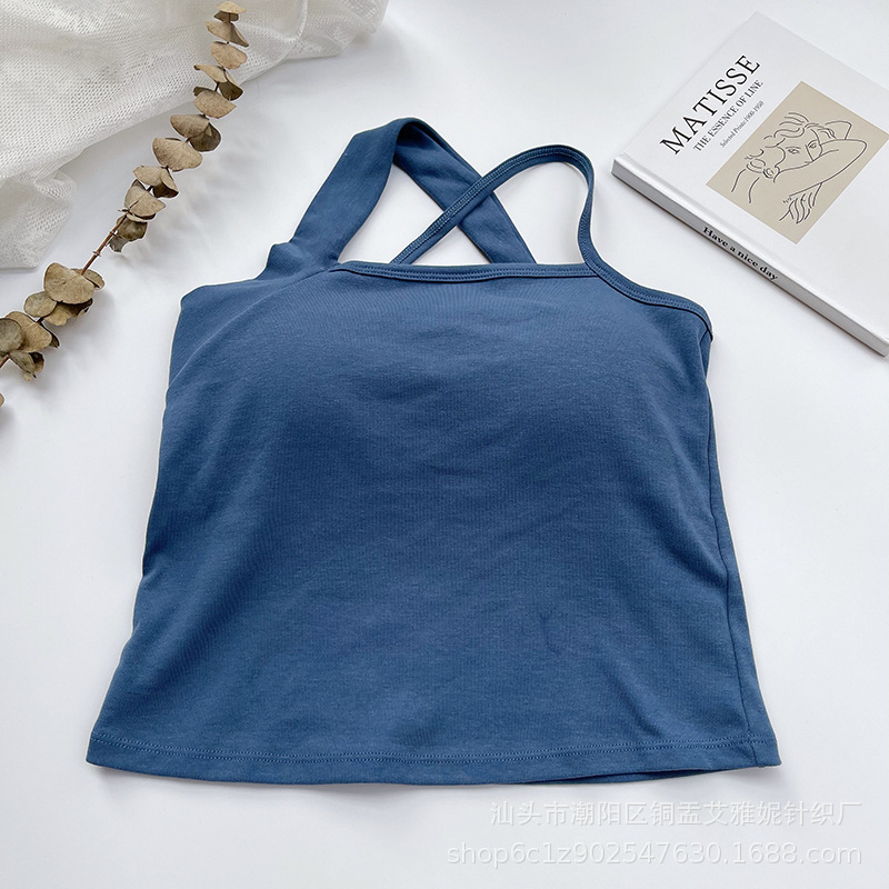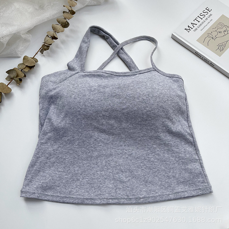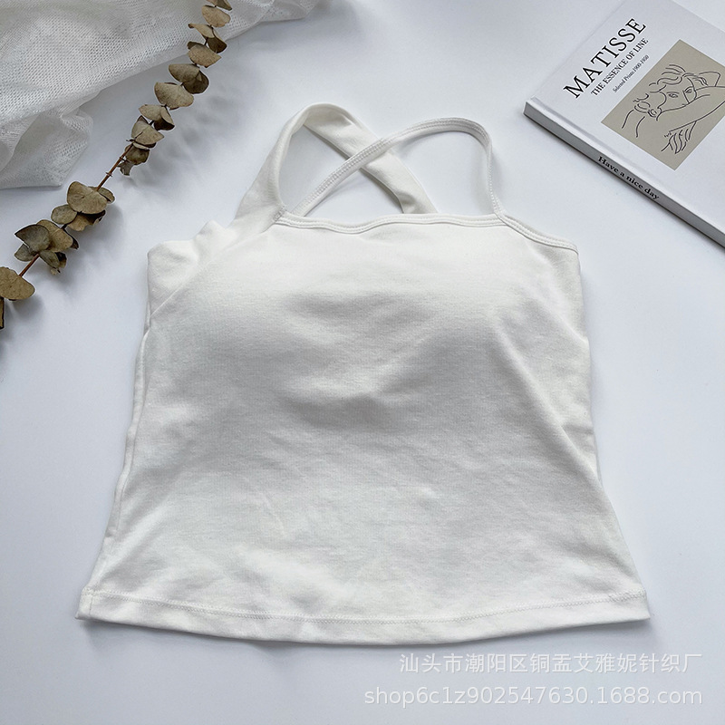 여성용 순면 조끼, 여름용 짧은 크로스 스트랩 탑, 가슴 패드 내장, 민소매 섹시 탑, 통기성스토어 가기