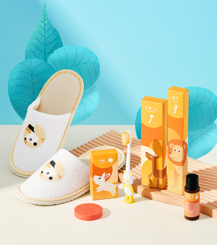 어린이 호텔 용품 호텔 객실 일회용 세면 도구 칫솔 치약 세트 2 in 1스토어 가기