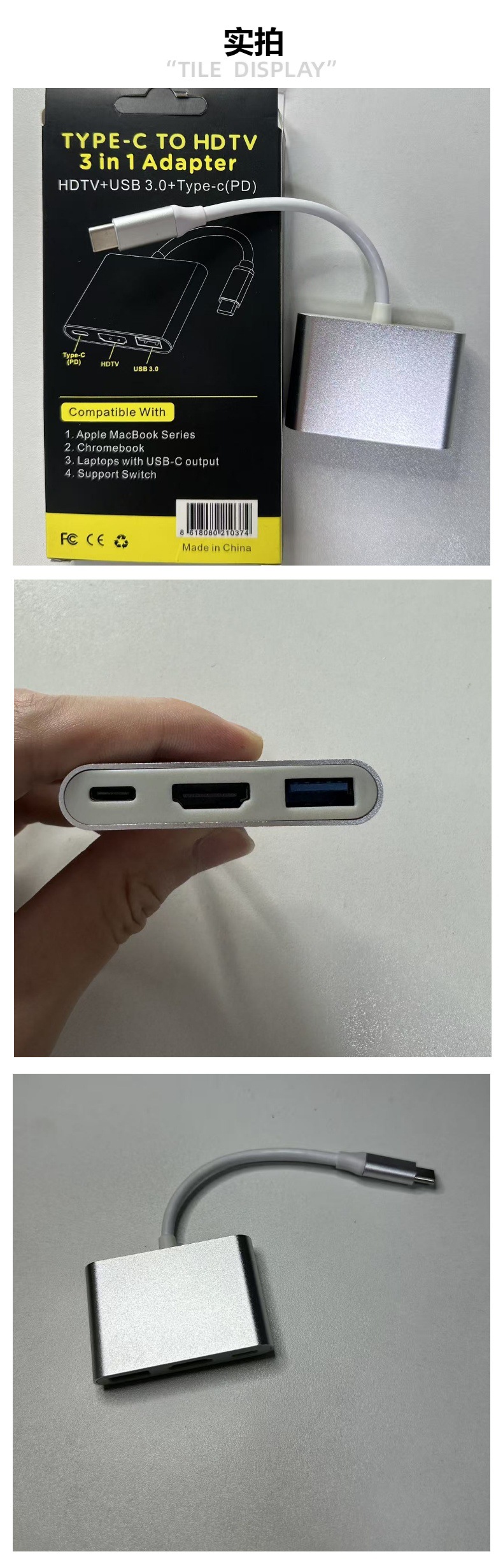 크로스보더 타입C 3-in-1 확장 도크 HD 고화질 PD 고속 충전 USB 허브 어댑터 케이블 4K 확장 도크 허브스토어 가기