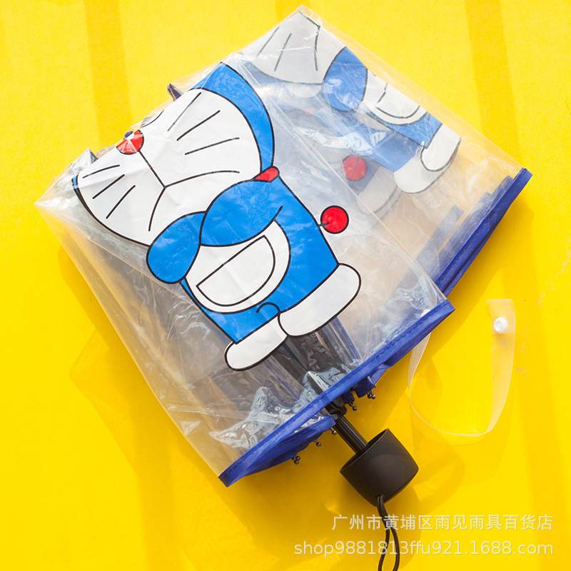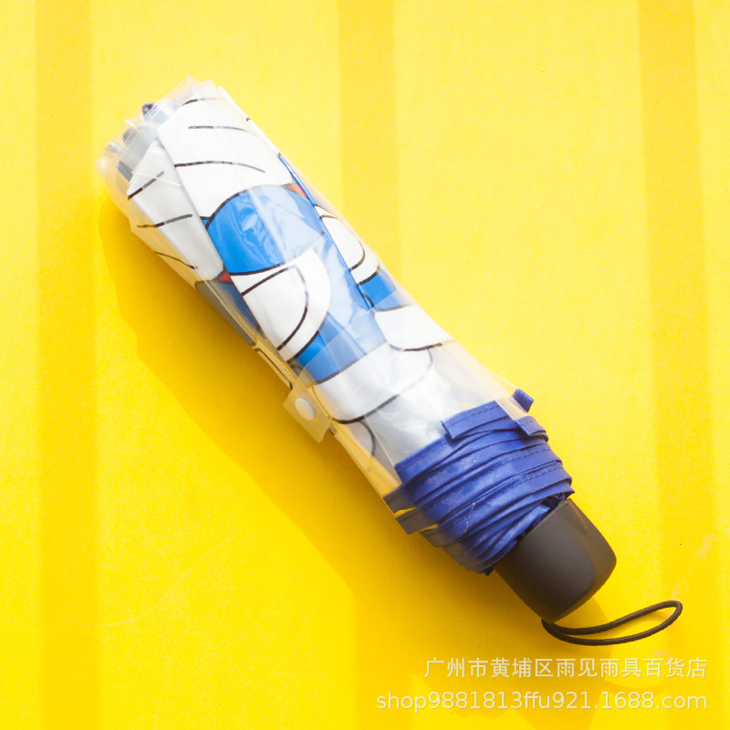도라에몽 세 접힌 우산 투명 우산 접는 수동 만화 애니메이션 귀여운 일본 징글 고양이 여성 어린이스토어 가기