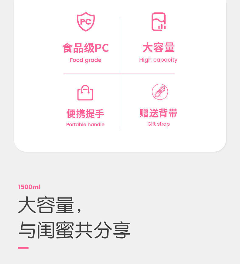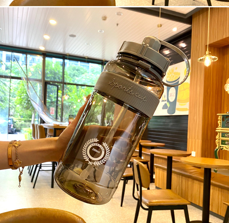 스트랩과 빨대가 있는 대용량 플라스틱 물병, 휴대용 손잡이가 있는 스페이스 컵, 야외 피트니스, 등산 스포츠 물병, 한국식스토어 가기