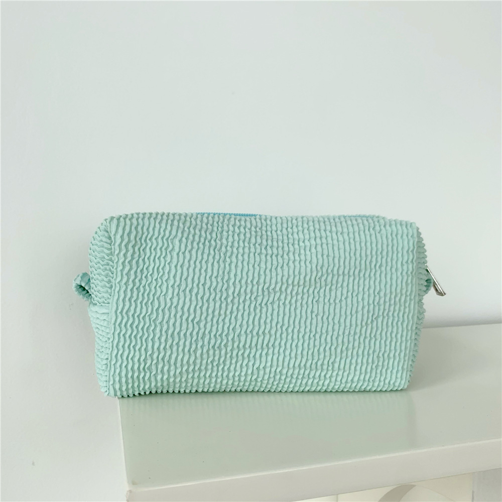 여름 단색 주름 웨이브 화장품 가방 신선한 소녀 세탁 피부 친화적인 학생 보관 가방