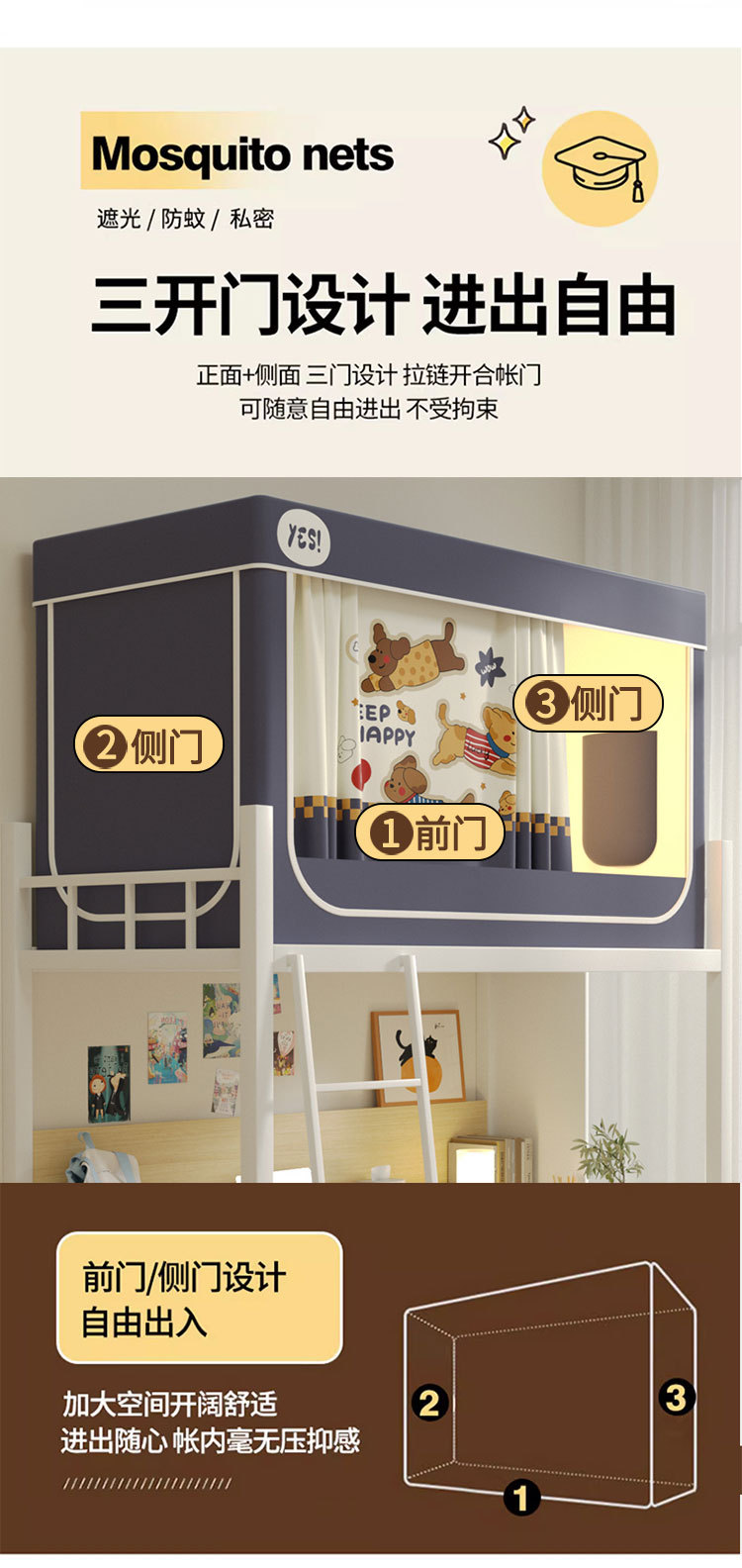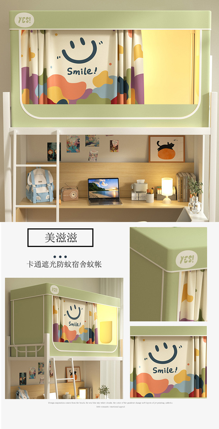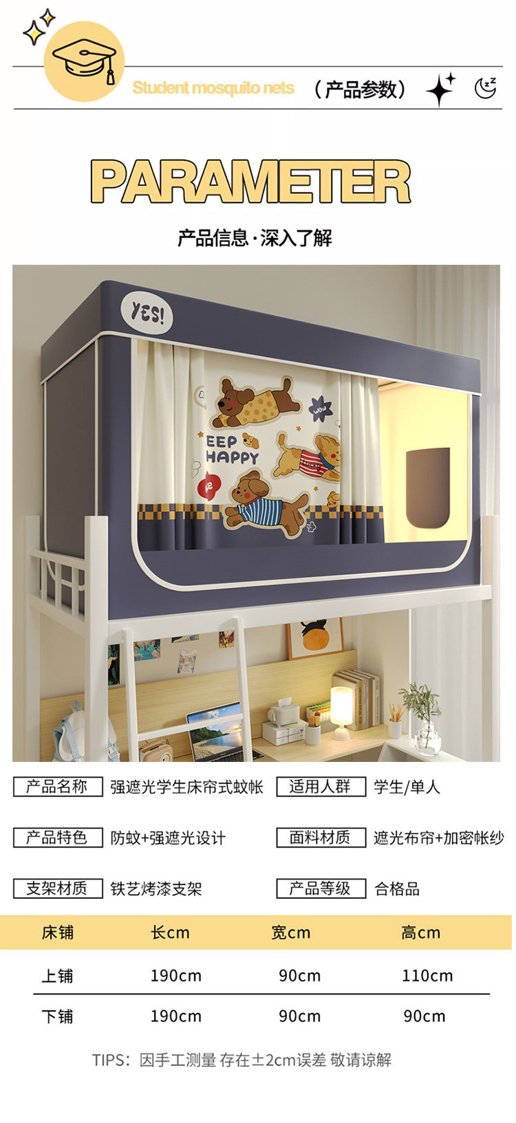 학생 기숙사 침대 벽 침대 커튼 모기장 브래킷 일체형 상부 및 하부 이층 3 도어 음영 침실 0.9m 침대 벽