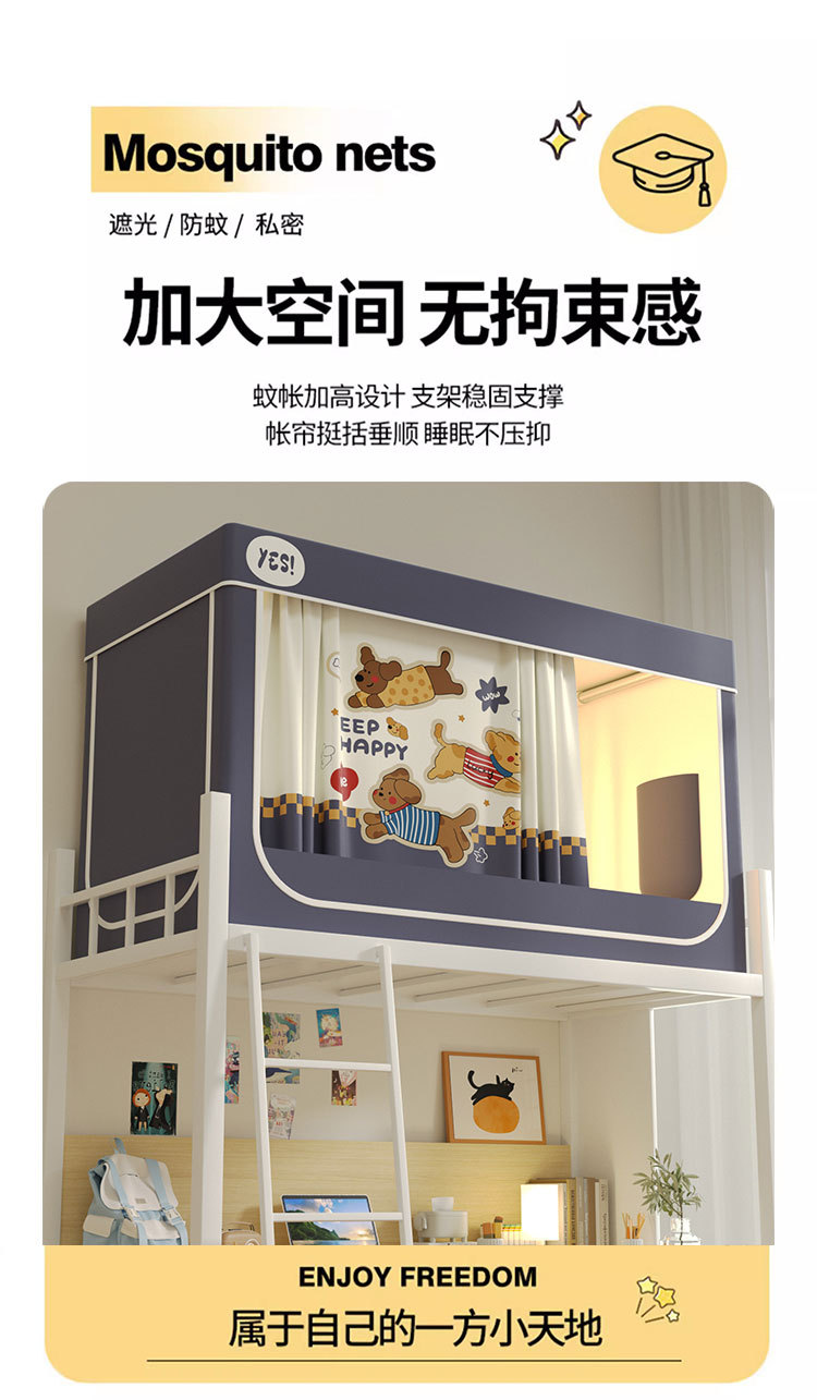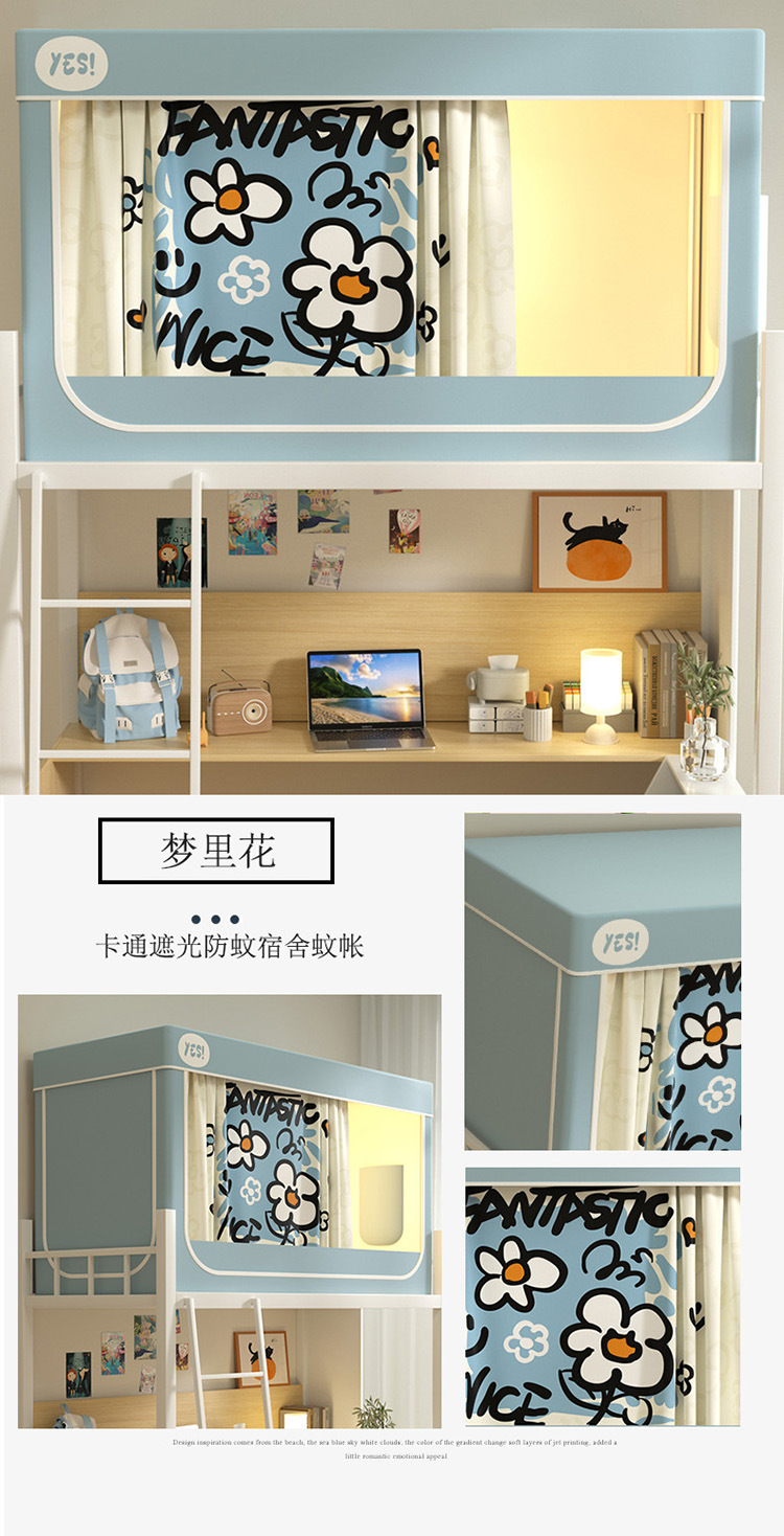 학생 기숙사 침대 벽 침대 커튼 모기장 브래킷 일체형 상부 및 하부 이층 3 도어 음영 침실 0.9m 침대 벽스토어 가기