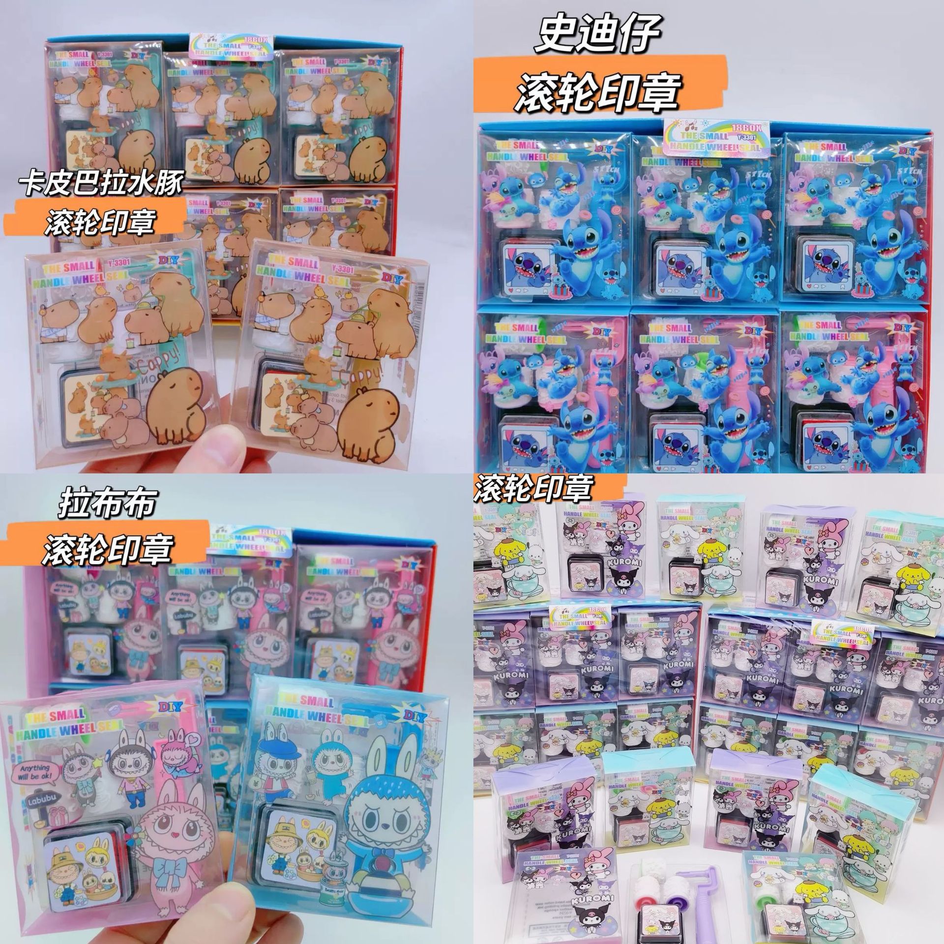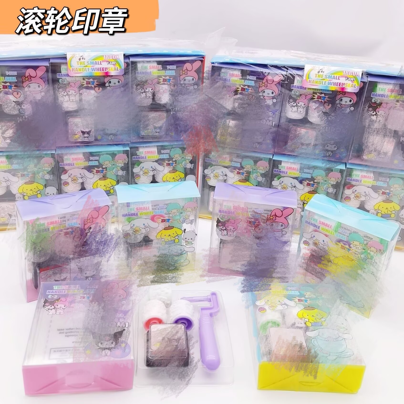 어린이 만화 롤러 스탬프 잉크패드 세트 손잡이형 초등학생 유치원 소품 스탬프 DIY 장난감스토어 가기