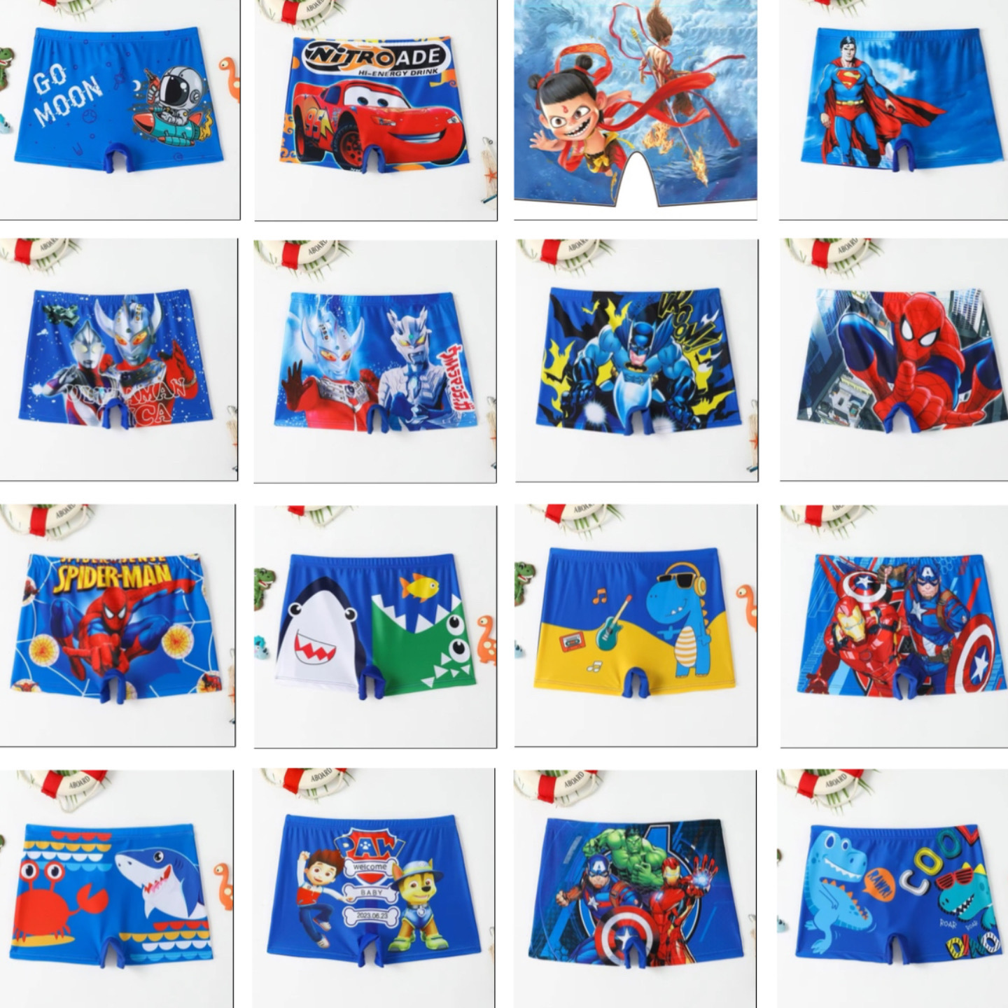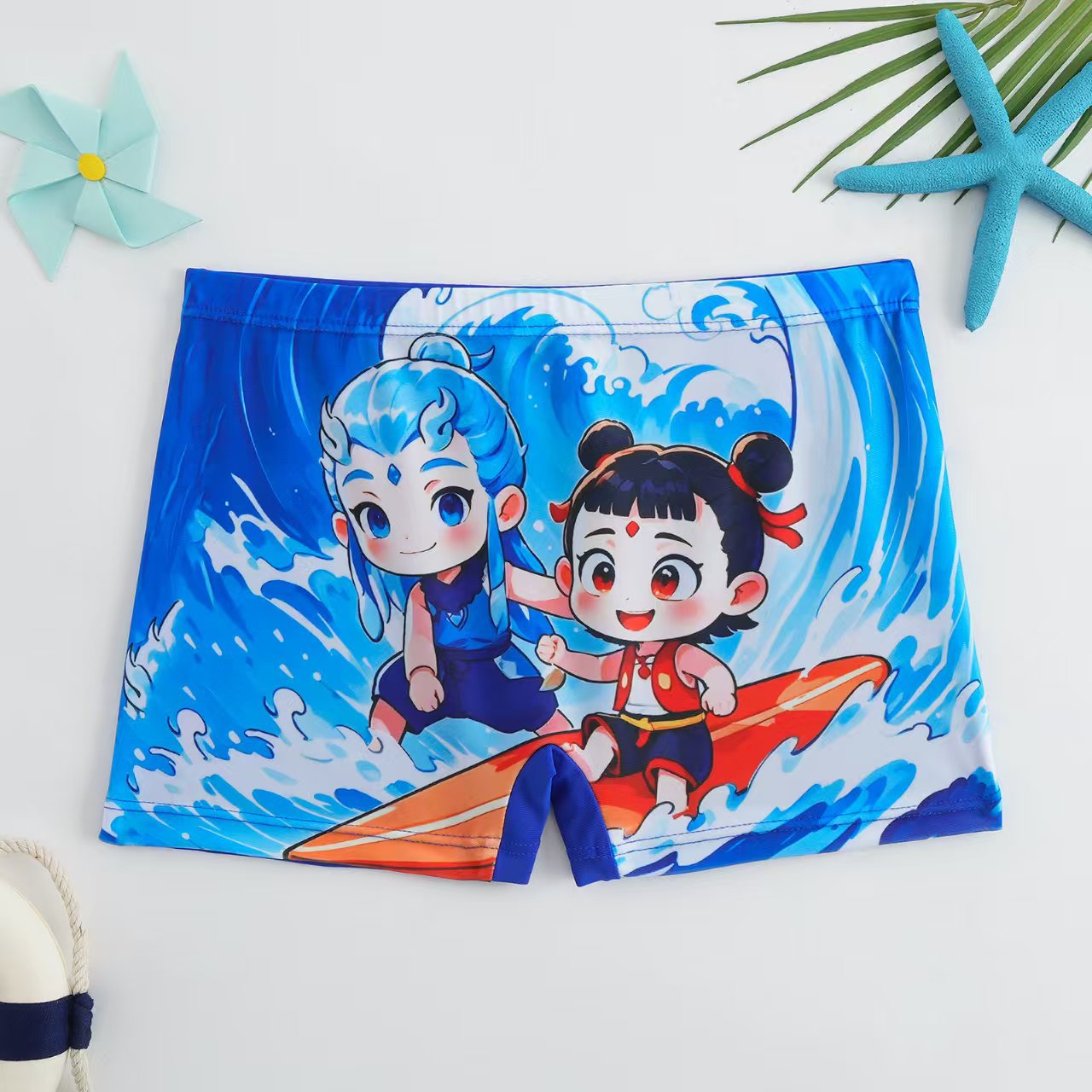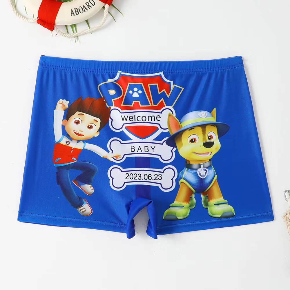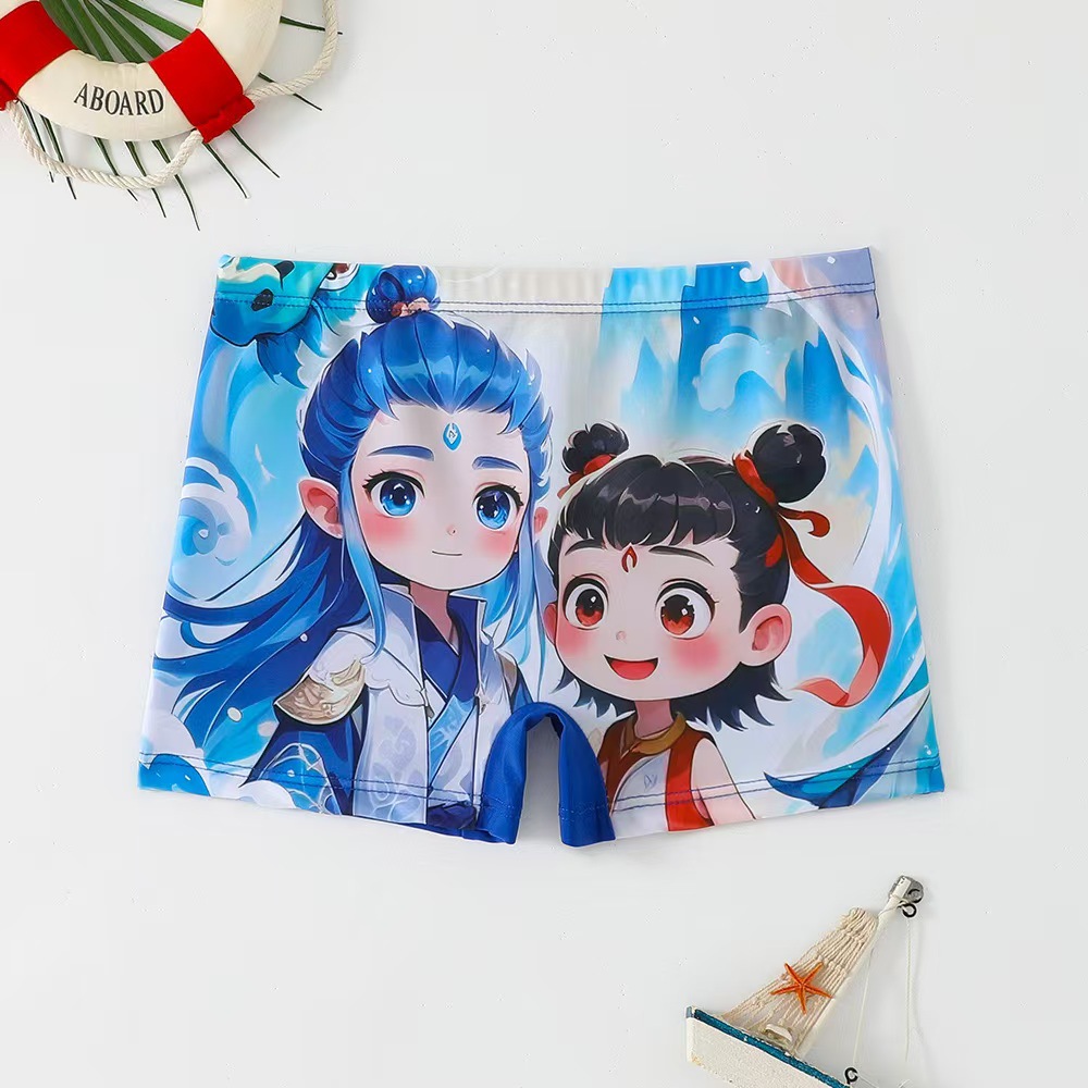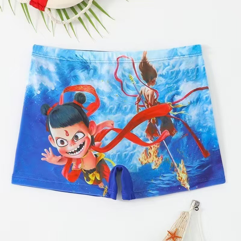 2024 어린이 새로운 수영 트렁크 만화 평평한 발 큰 소년 해변 온천 수영 트렁크 도매스토어 가기
