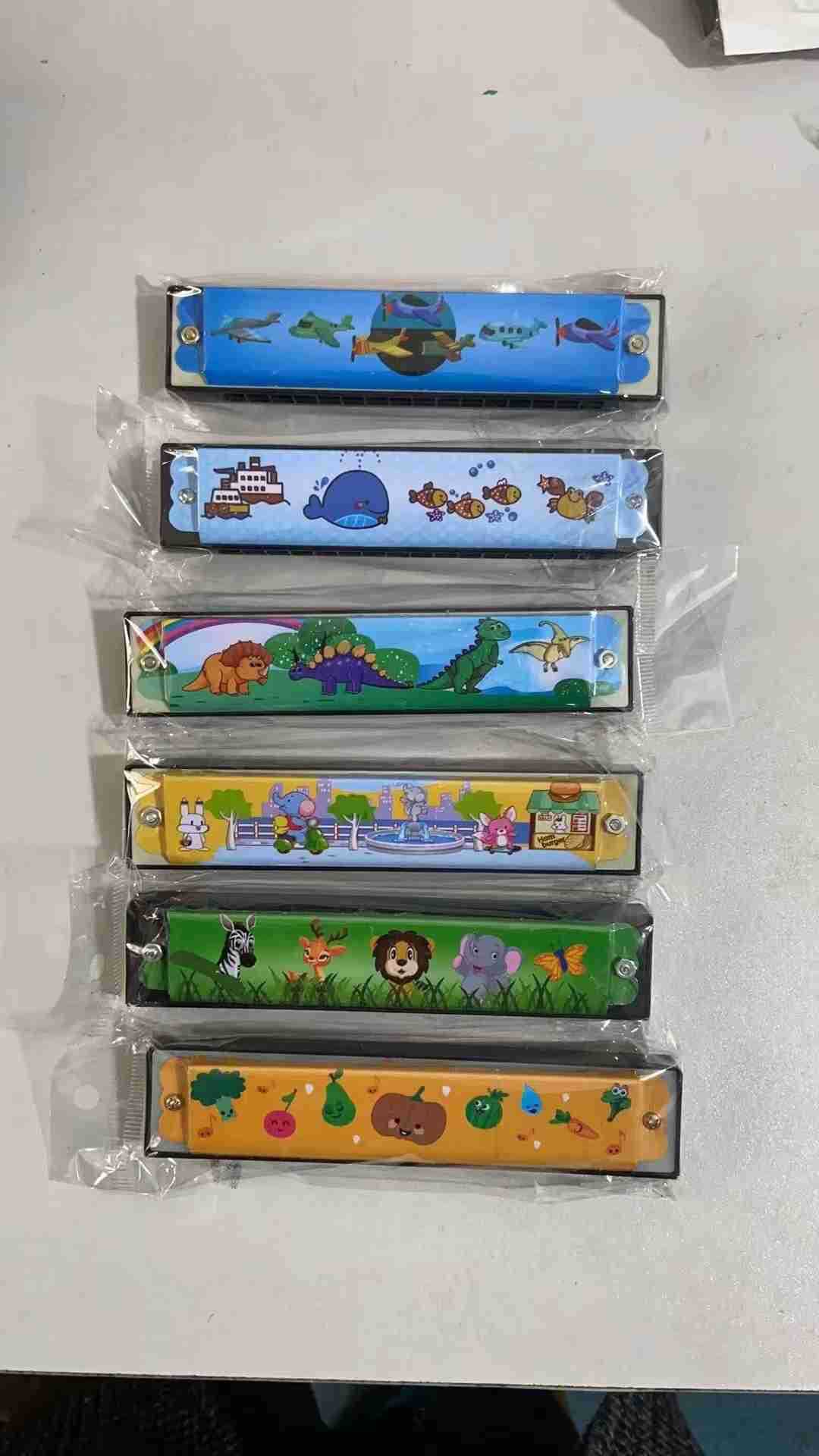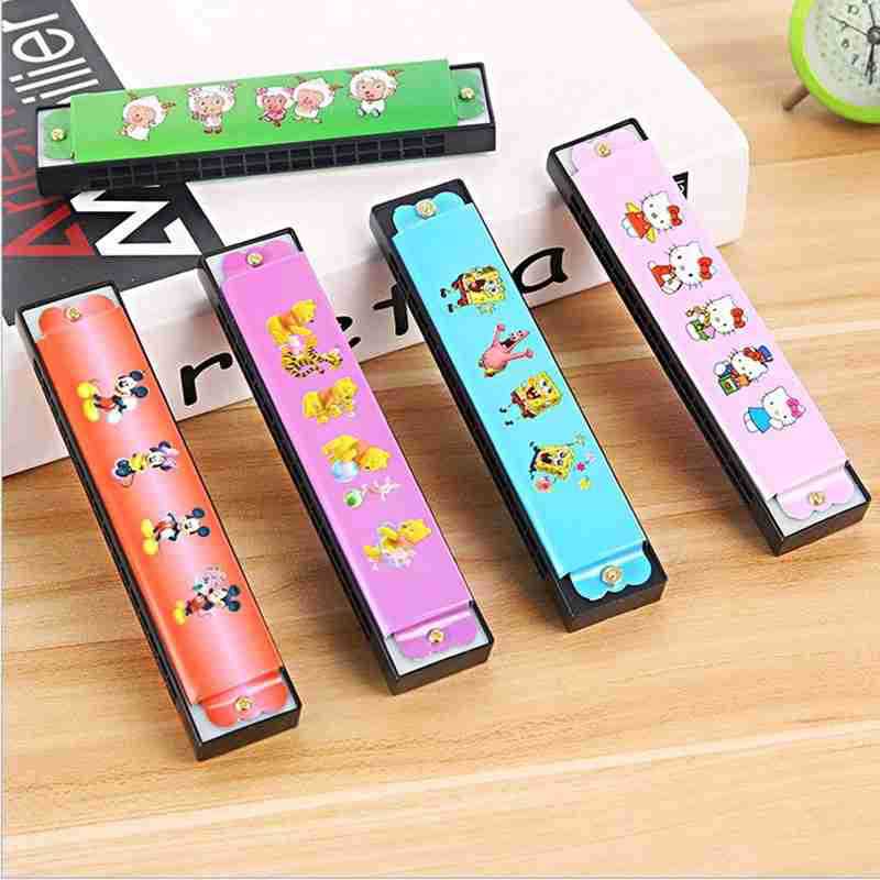 하모니카 나무 페인트 이중 행 16 홀 24 홀 불어 스틸 하모니카 어린이 악기 장난감 하모니카 연주 학생스토어 가기