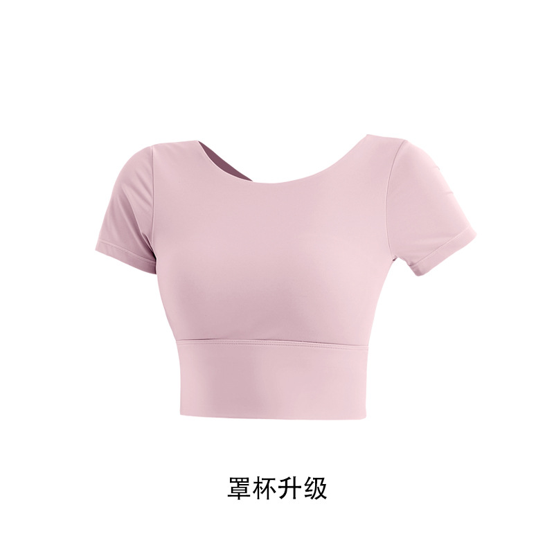 가슴 패드가있는 여성용 스포츠 조끼 통기성 야외 피트니스 의류 아름다운 백탑 요가 의류 반팔 티셔츠 통기성 속건