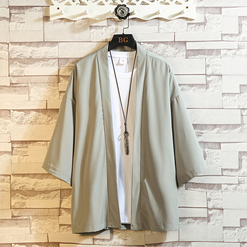 2024 여름 신작 남성 심플 솔리드 컬러 가디건 캐주얼 루즈 중국 스타일 7부 소매 셔츠 윈드 브레이커 플러스 사이즈