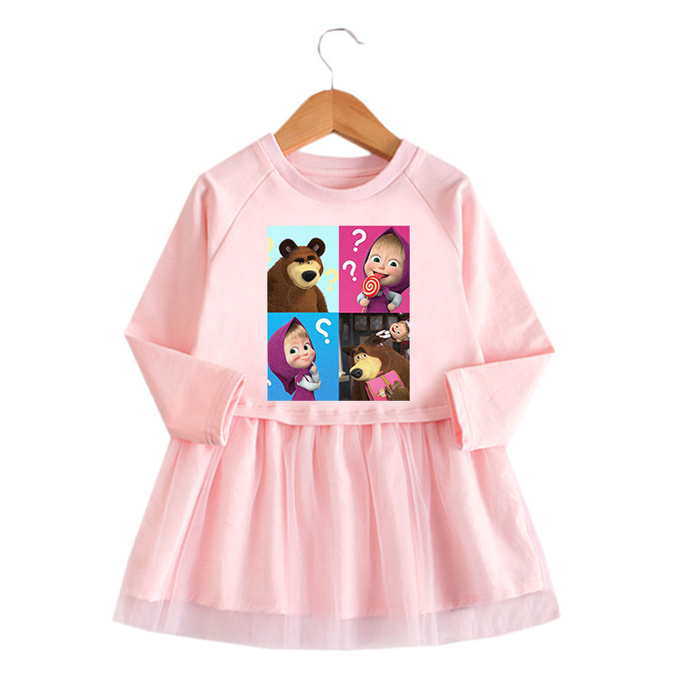 2023 한국 스타일 봄과 가을 새로운 여자 원피스 만화 긴 소매 메쉬 원피스 아기 외국 스타일 공주 원피스