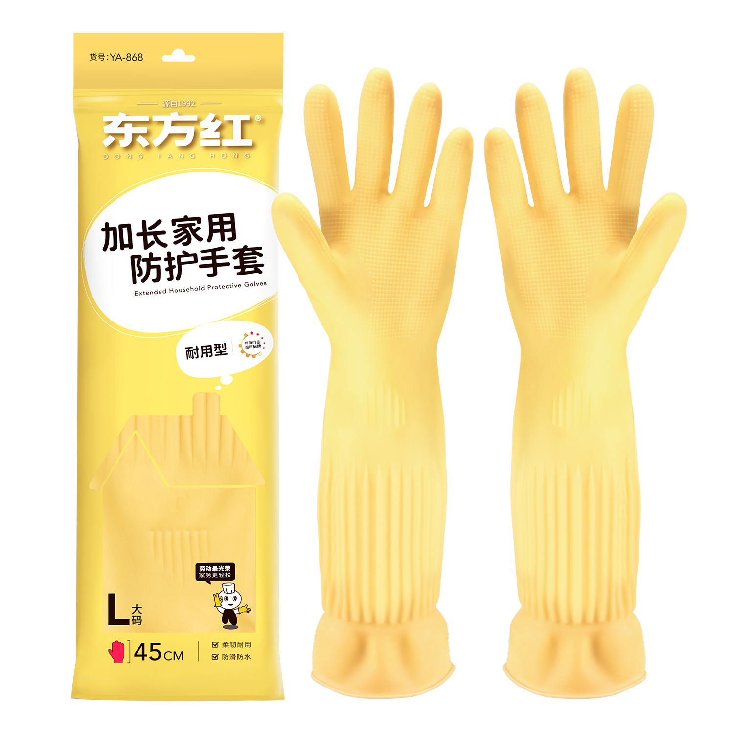 Dongfanghong 45cm 길이 라텍스 장갑 쇠고기 힘줄 두꺼운 고무 장갑 세탁 세탁 설거지 가정용 장갑 긴