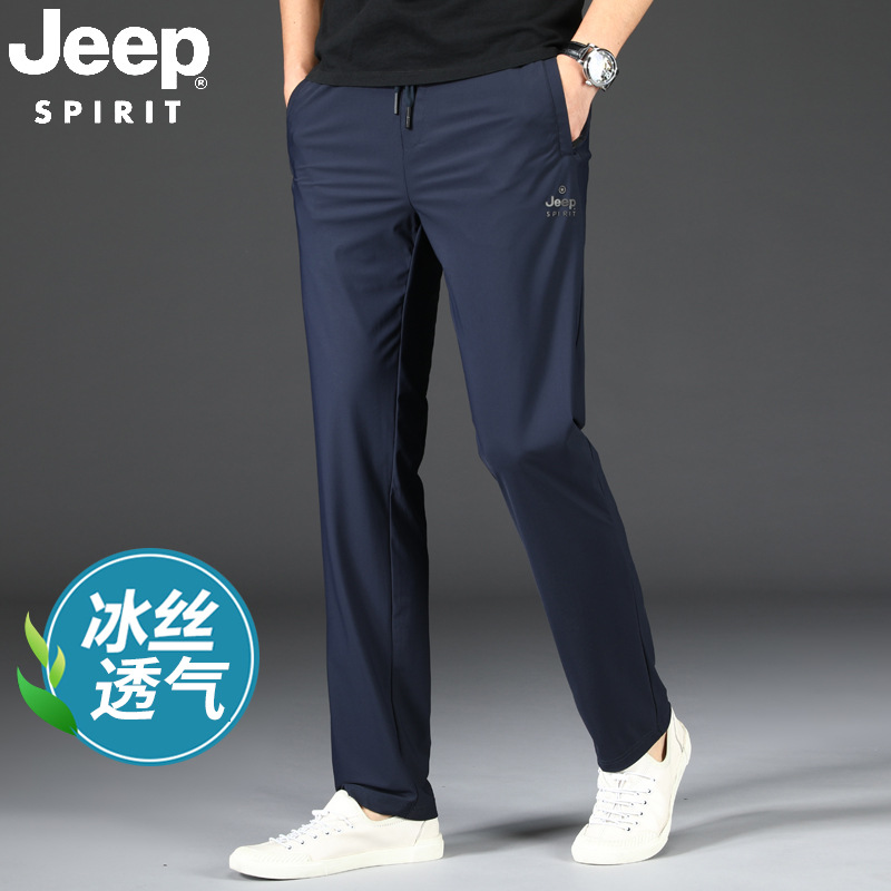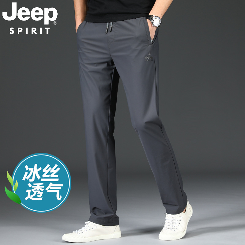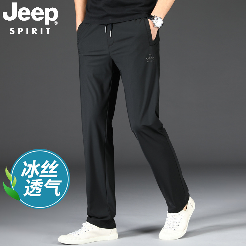 지프 스피릿 아이스 실크 스웨트 팬츠 남성 여름 초박형 속건성 긴 바지 루즈 스트레이트 신축성