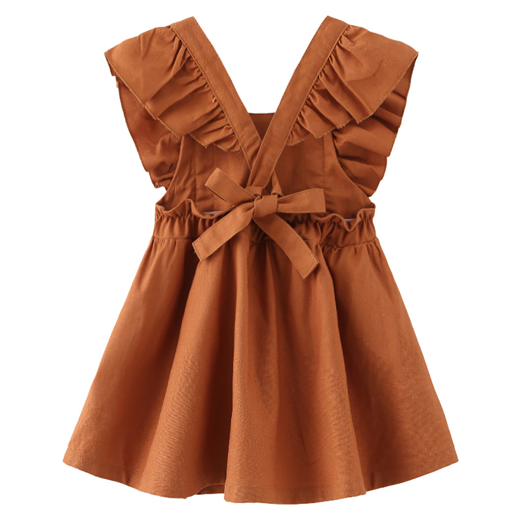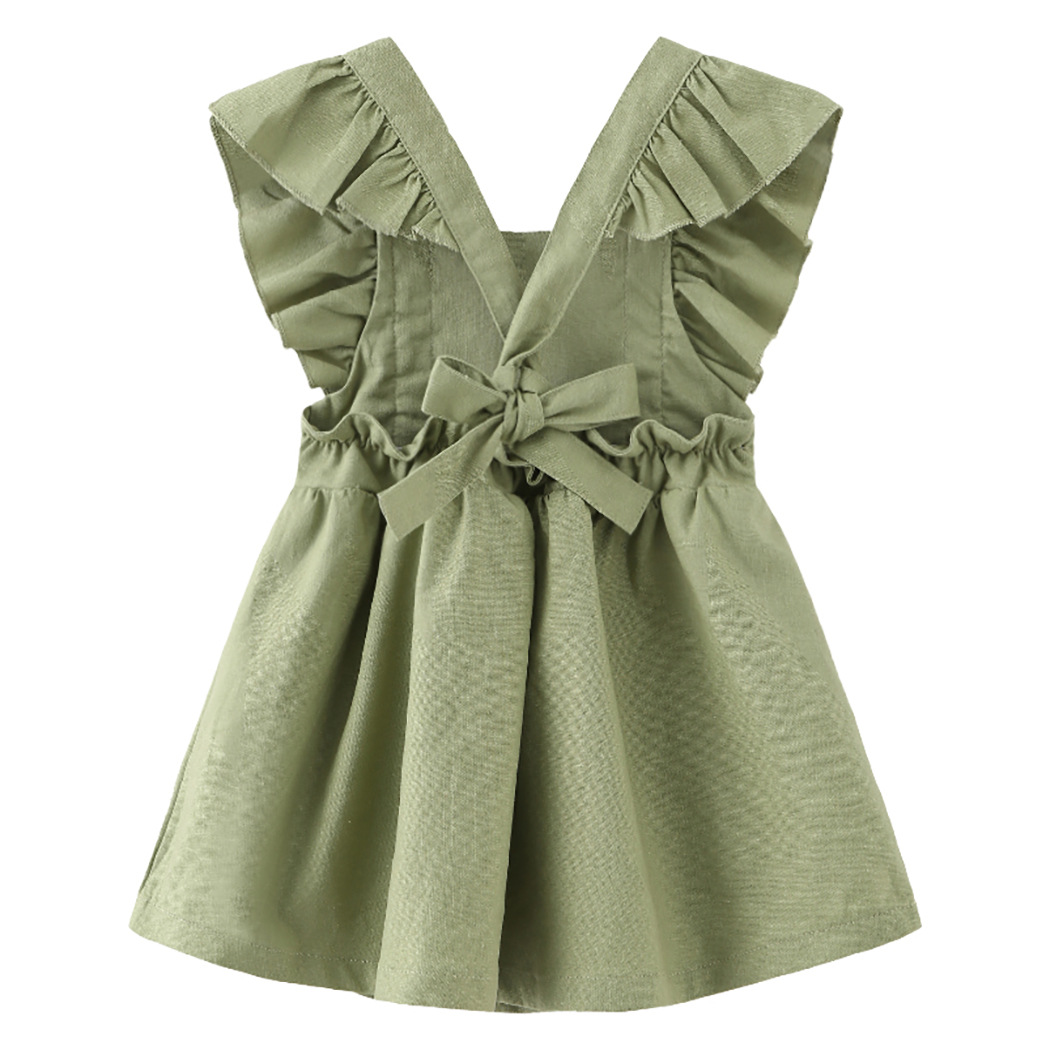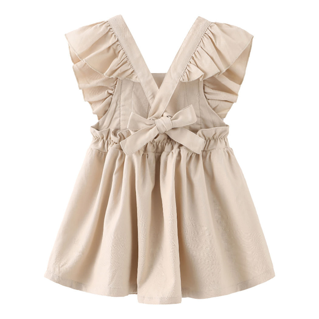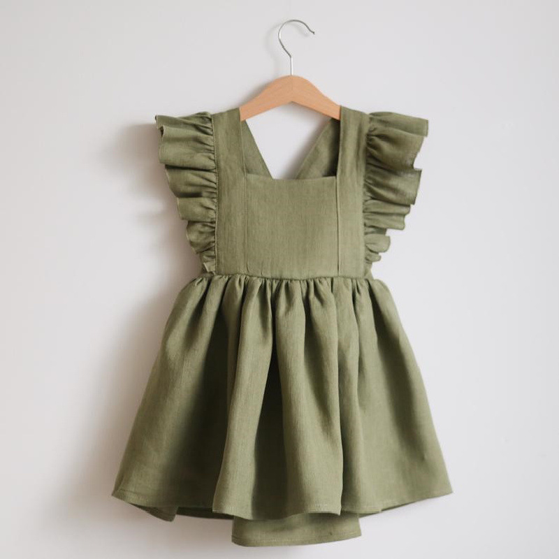 女宝宝背带裙女童连衣裙棉麻裙子婴儿跨境女婴baby cloth ins