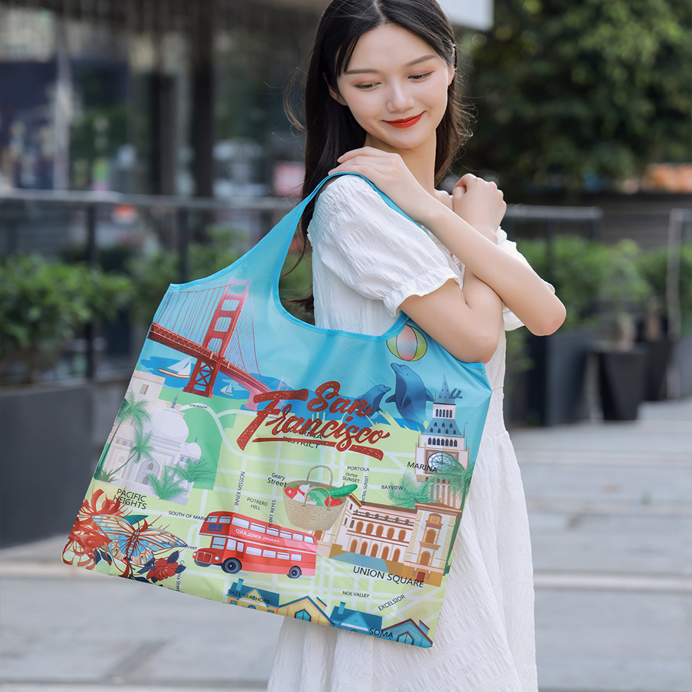 박물관 명화 시리즈 쇼핑백, 가볍고 접을 수 있는 친환경 가방, 패셔너블한 대용량 수납 휴대용 가방스토어 가기