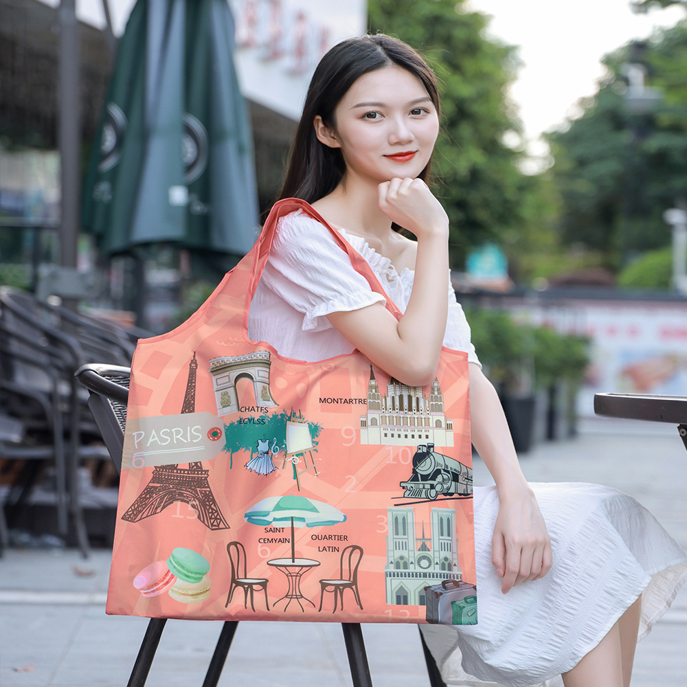 박물관 명화 시리즈 쇼핑백, 가볍고 접을 수 있는 친환경 가방, 패셔너블한 대용량 수납 휴대용 가방