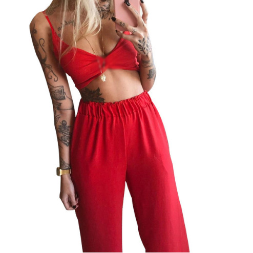 2026년 여름 신상품, 즉시 배송 가능, 해외 아마존 유럽 및 미국 여성복, 프린트 섹시 튜브탑 루즈핏 와이드 팬츠 투피스 세트