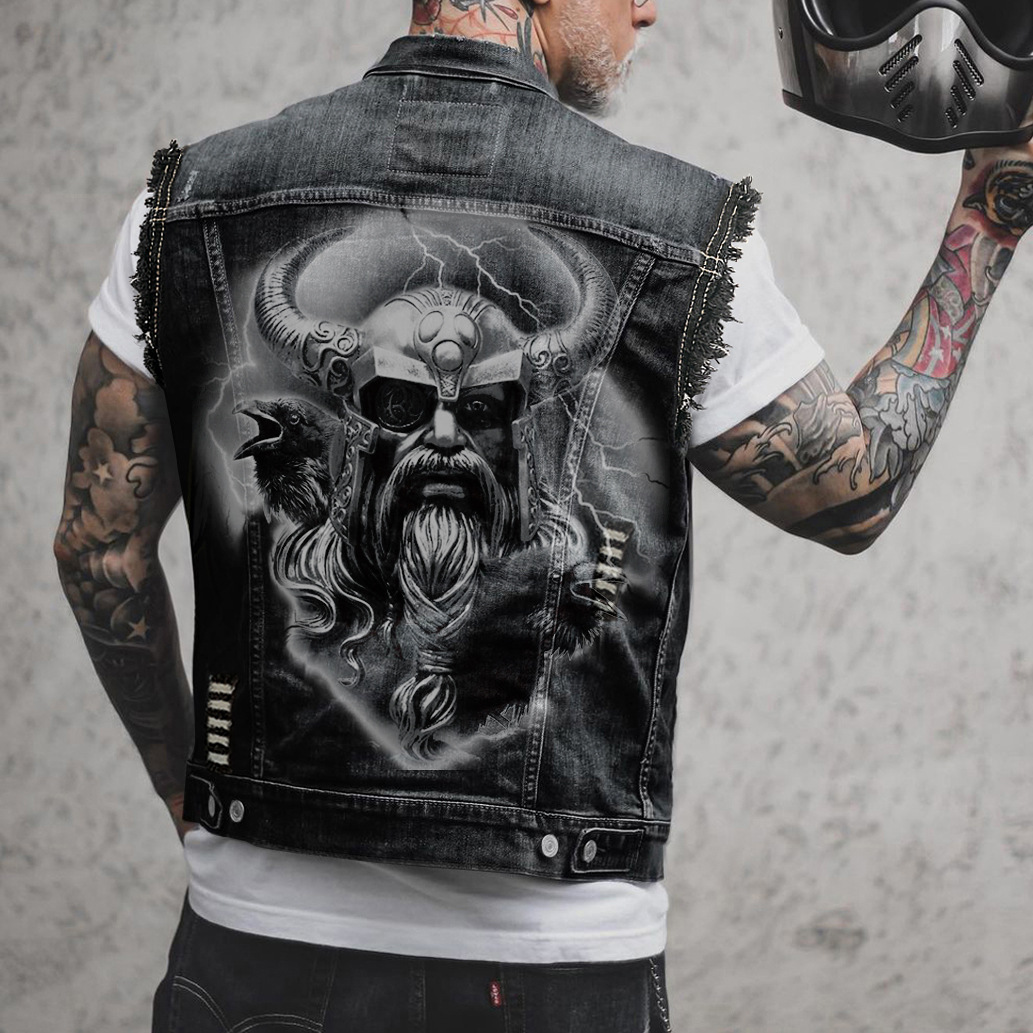 Niujiao 민소매 펑크 스포츠 기관차 옷깃 횡포 남자의 데님 말 클립 크로스 보더 전자 상거래 2039스토어 가기
