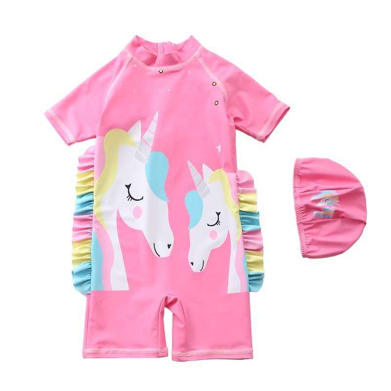 어린이 수영복 소녀의 중소 공주 원피스 더블 컬러 에지 유니콘 수영복 아기 소녀의 자외선 차단제 수영복
