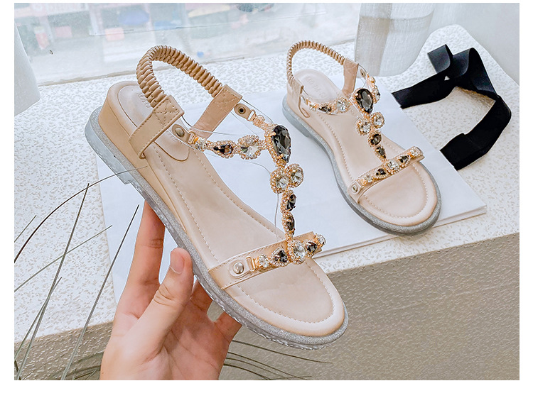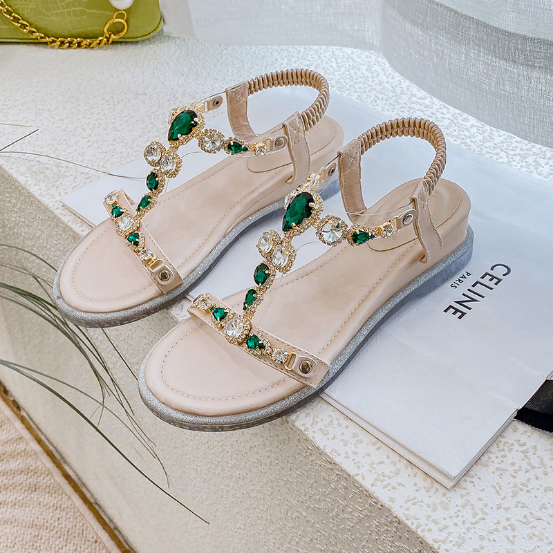 보헤미안 스타일 캐주얼 로마 샌들 라운드 토 오픈 토 타르트 스트랩 샌들 워터 플랫폼 라인 석 웨지 샌들 여성