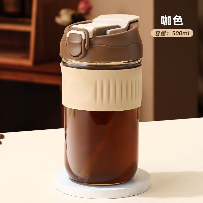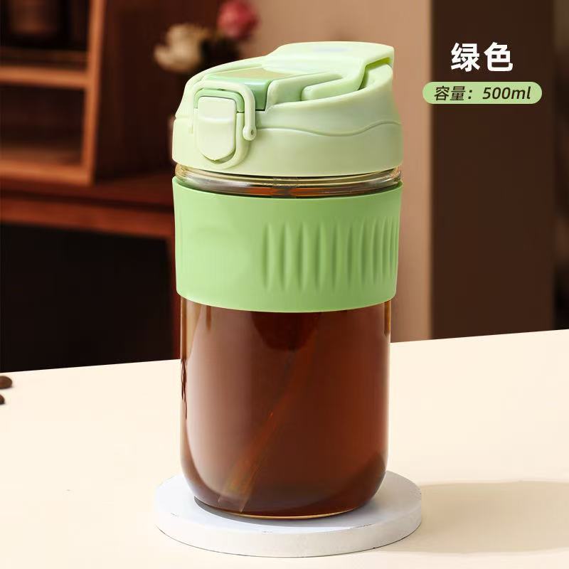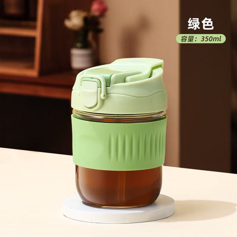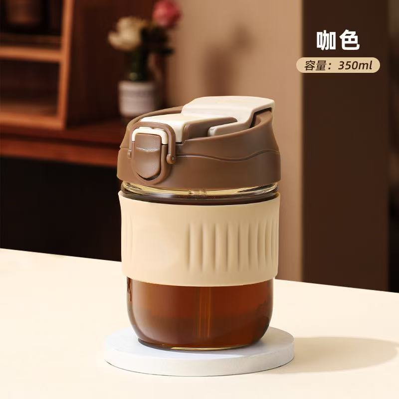 고붕규산 유리 물컵, 더블 드링크 커피 유리컵, 학생용 밀크티 컵, 심플한 직접 마시는 빨대컵, 유리 물컵스토어 가기